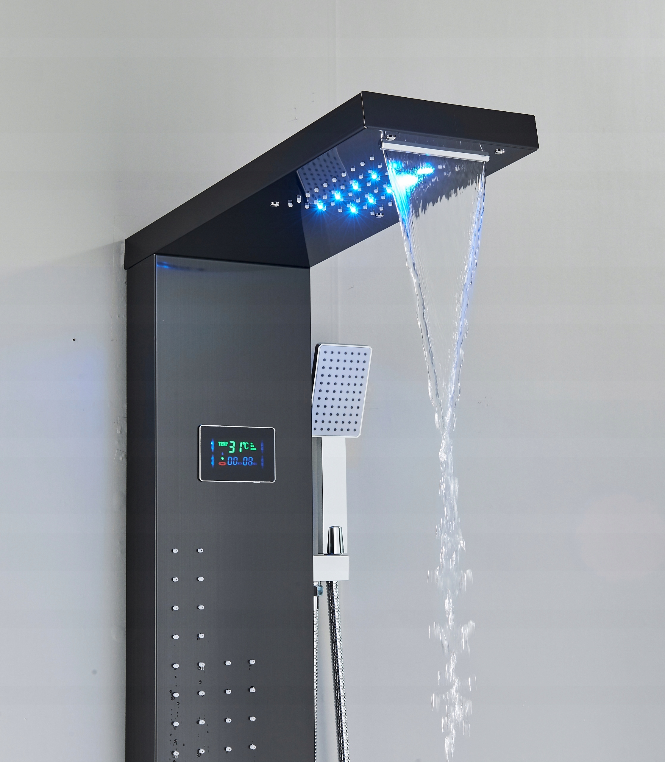 Черная душевая панель, светодиодный водопад с гидромассажем и тропическим душем