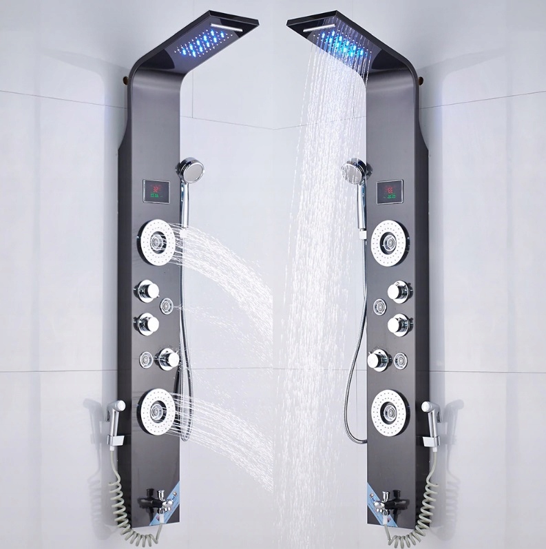 Эксклюзивная, стильная, современная душевая панель с гидромассажем, водопадом, тропическим душем и светодиодами.