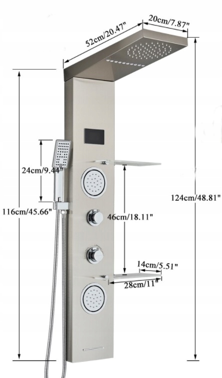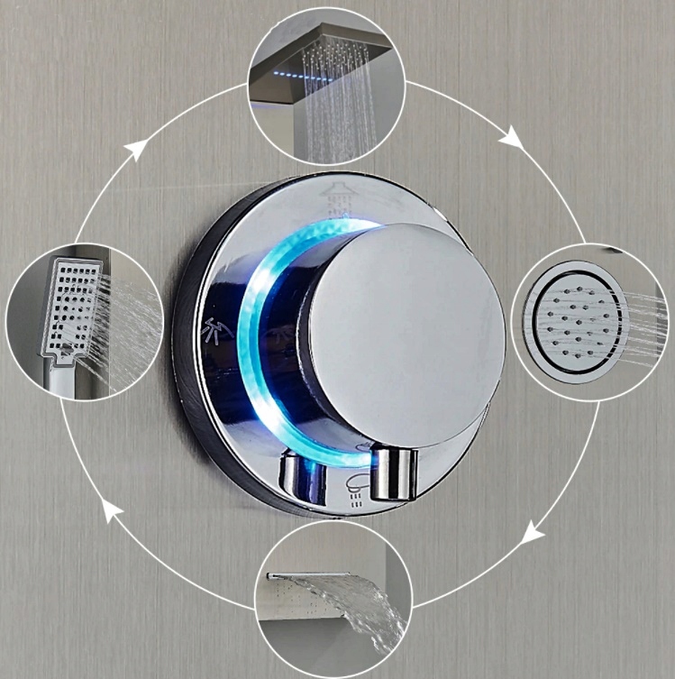 Світлодіодна душова панель з нержавіючої сталі з тропічним душем і гідромасажем