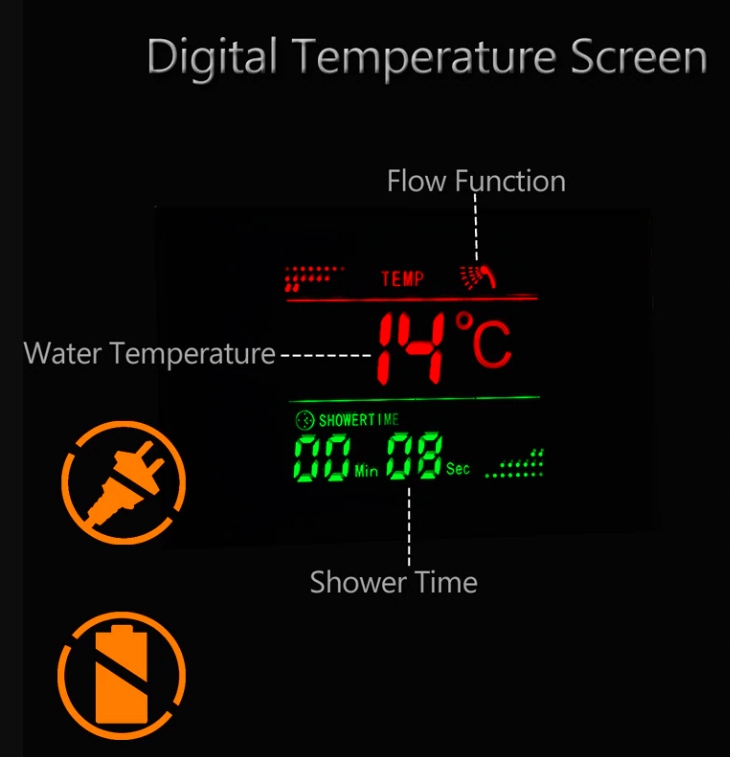 Этот продукт не требует источника питания. Светодиодный дисплей активируется автоматически потоком воды. Не нуждается в электричестве и батарейках. Изделие содержит гидроэлектрогенератор. Когда поток воды достаточен, он будет генерировать безопасное питание для цифрового дисплея и (синей) светодиодной подсветки.
