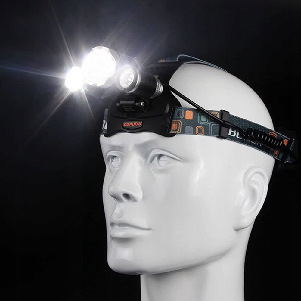 Налобный фонарь полезен в условиях, когда требуется громкое освещение. В фонаре используются 3 светодиода CREE XM-L T6 со сроком службы до 100 000 часов. Четыре режима освещения активируются одним переключателем - 1x, 2x и 3xLED, а также стробоскопический режим (мигающий сигнал SOS) с использованием всех 3 диодов. Фонарик изготовлен из легкого алюминиевого сплава. Питание - два аккумулятора емкостью 4200мАч каждый. В комплект входят два зарядных устройства — сетевое зарядное устройство на 230 В и автомобильное зарядное устройство на 12 В.