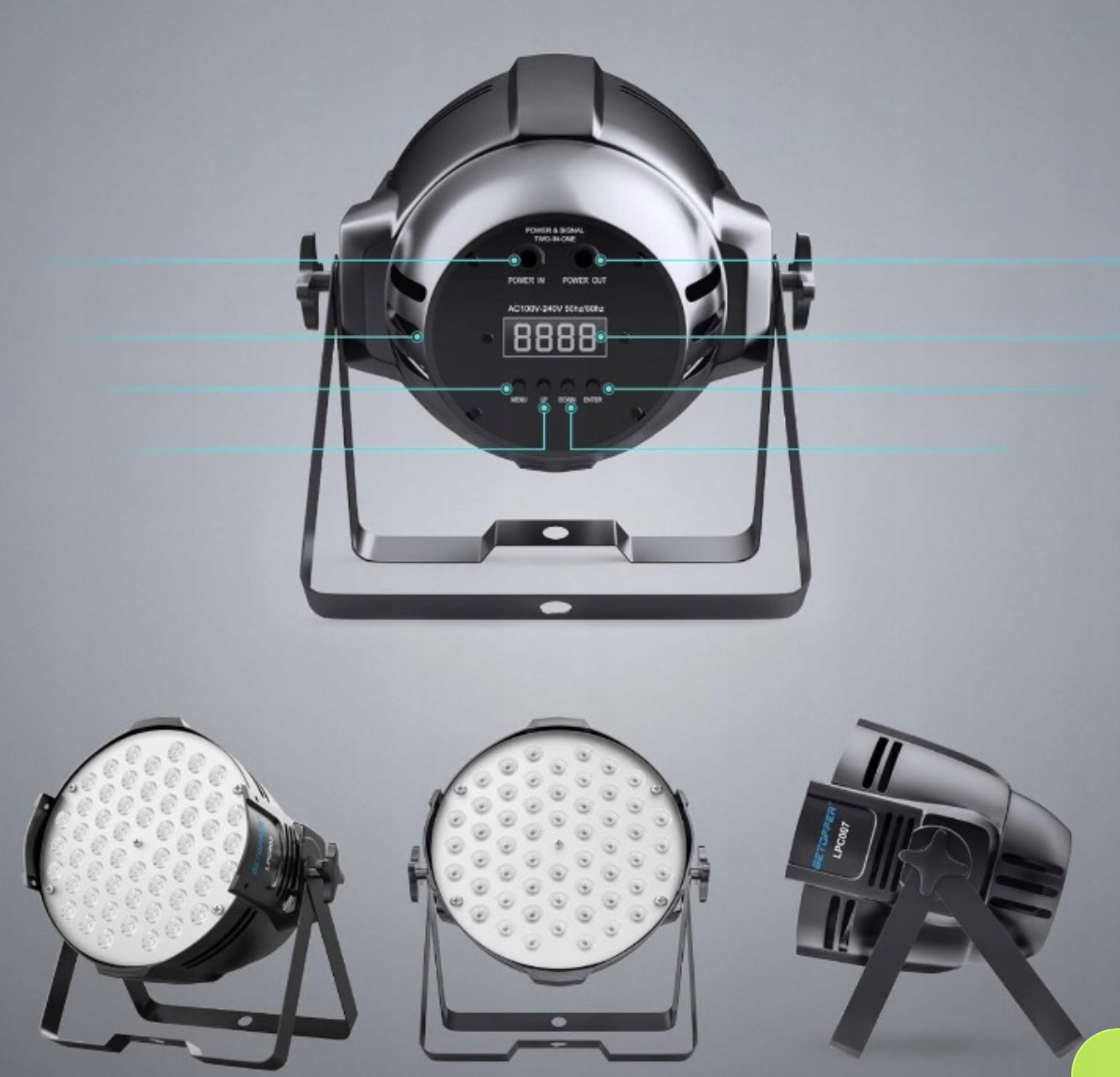Betopper 180 W Stefle Lighting оснащено 54 супер яркими светодиодными лампами RGB с диапазоном 6-10 метров и оптическим углом 26 градусов,