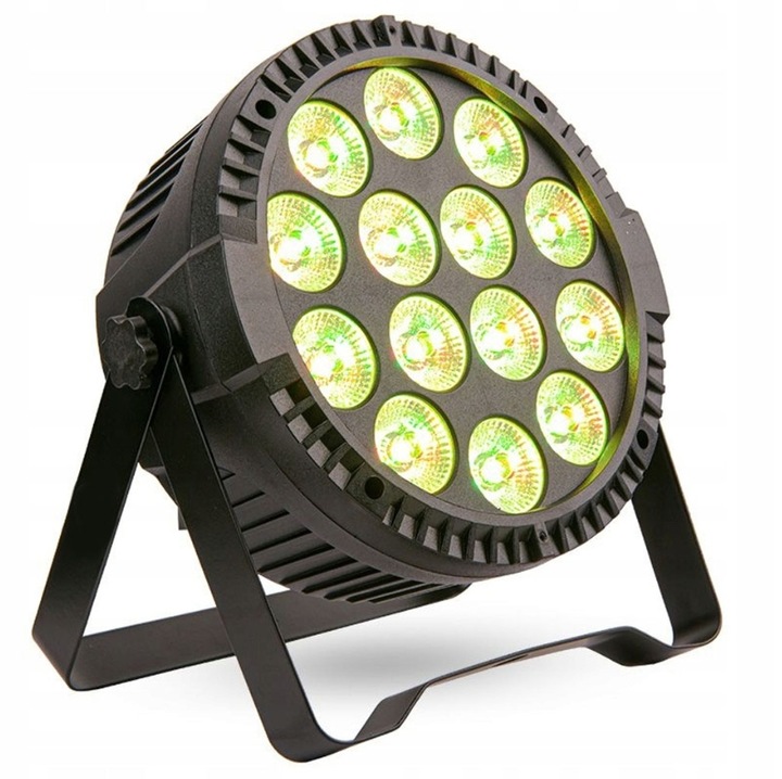 Источник света 14 x 6 W, что может создать неограниченное смешивание цвета и эффекты радуги. Встроенную программу можно контролировать с помощью консоли, линейного затемнения 0-100% и темной функции, обеспечивая удивительный визуальный опыт во время занятий развлечениями.