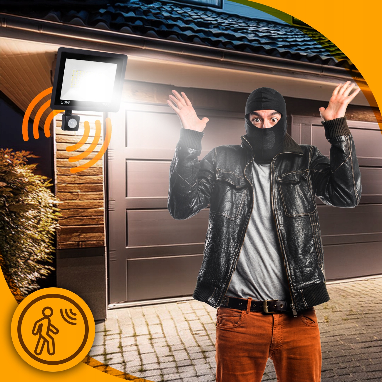 Галоген оснащен датчиком движения , благодаря которому нам не нужен переключатель, чтобы запустить лампу . чувствительность и диапазон датчиков могут быть отрегулированы , используя значение , расположенное в задней части функции.