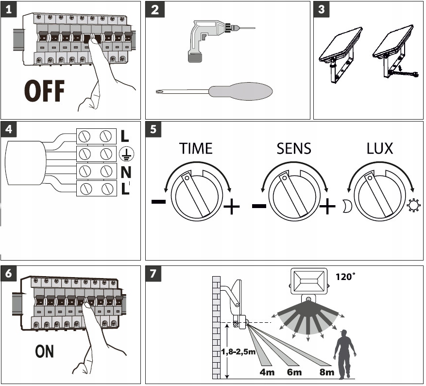 ✅ ЛЮКС – позволяет установить уровень освещенности, при котором датчик должен включить освещение. Это защищает от нежелательного включения освещения в течение дня: <10-2000люкс