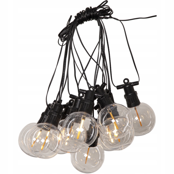 Светодиодная садовая гирлянда из 10 прозрачных ламп в стиле ретро станет прекрасным световым украшением сада, террасы или балкона. Лампы накаливания излучают теплый белый свет, создавая приятную и атмосферную атмосферу, которая сделает любую встречу на свежем воздухе еще приятнее. Благодаря длине 4,5 метра и шнуру питания 5 метров гирлянда легко устанавливается и подходит для различных композиций. Идеально подходит в качестве украшения сада, террасы, балкона, а также для особых случаев и рождественских мероприятий