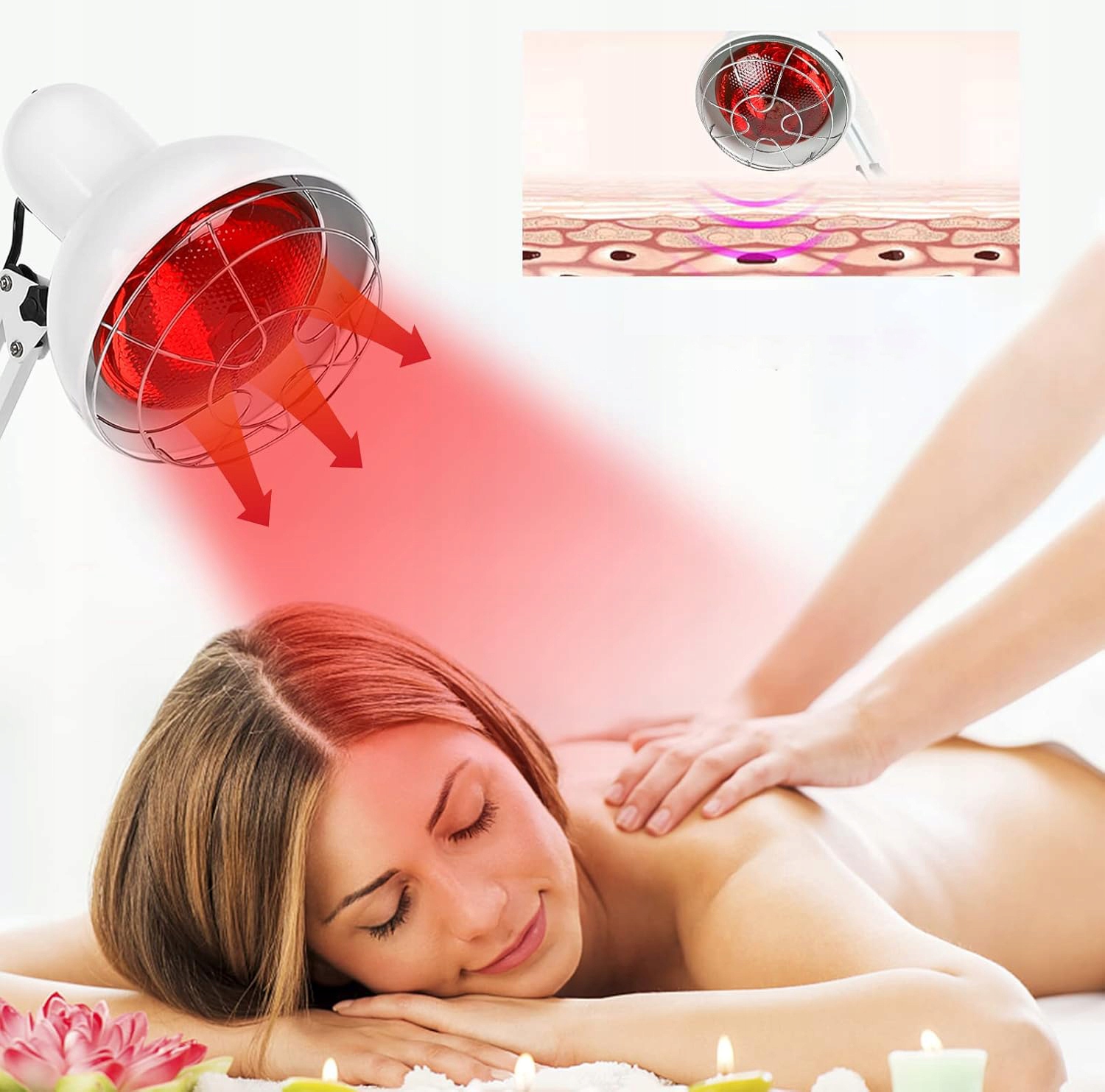 - Красная лампа 150 Вт излучает широкий диапазон длины волны света 600–1400 нм, также покрывая инфракрасный свет с длиной волны 1300 нм. Эффективно снимает напряжение и мышечную боль, давая ощущение расслабления и комфорта.