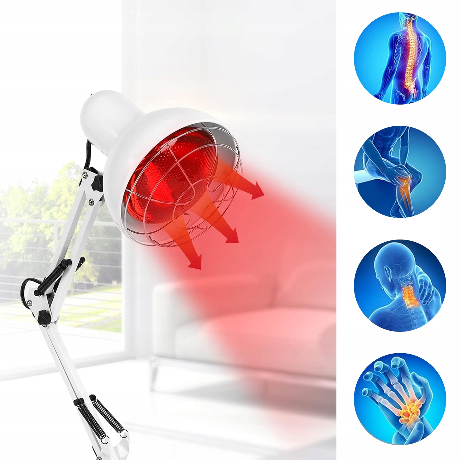 - Если вы чувствуете боль мышц, суставов, спины, коленей, рук, локтей, модных мышц и т. Д., То, то для вас будет хороший выбор. Разоблачение тела лампой в течение 10-20 минут может смягчить боль и дискомфорт и добавить энергию в повседневную жизнь.