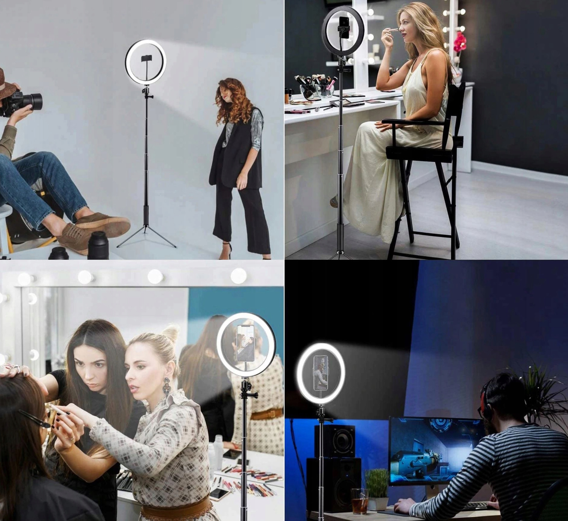 Кольцевая светодиодная лампа идеально подойдет для выделения деталей и естественного вида лица.