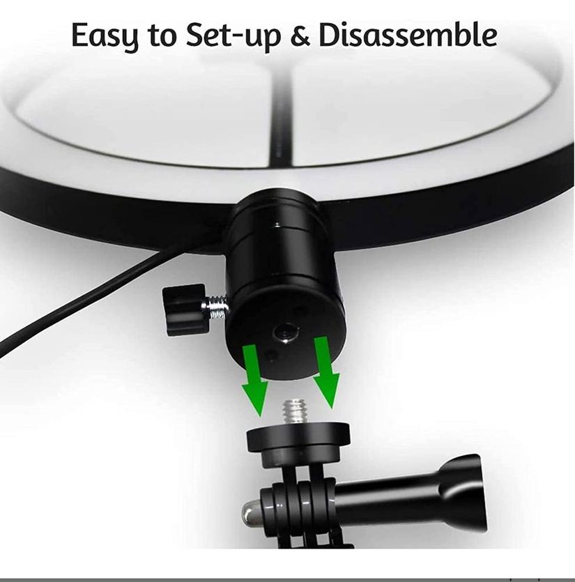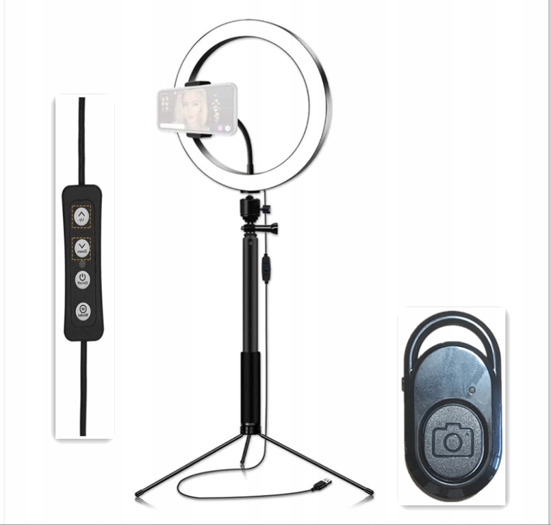 - Светодиодная кольцевая лампа 26 см с кабелем питания USB и Пульт дистанционного управления Bluetooth