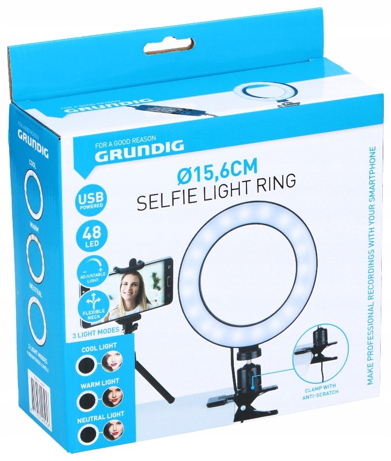 Кольцевая лампа GRUNDIG имеет встроенный рассеиватель, благодаря которому мы получаем приятный, мягкий свет без необходимости использования дополнительных аксессуаров. Мощность света и цветовую температуру можно регулировать с помощью пульта дистанционного управления. Это позволяет идеально подобрать свет к существующим условиям.