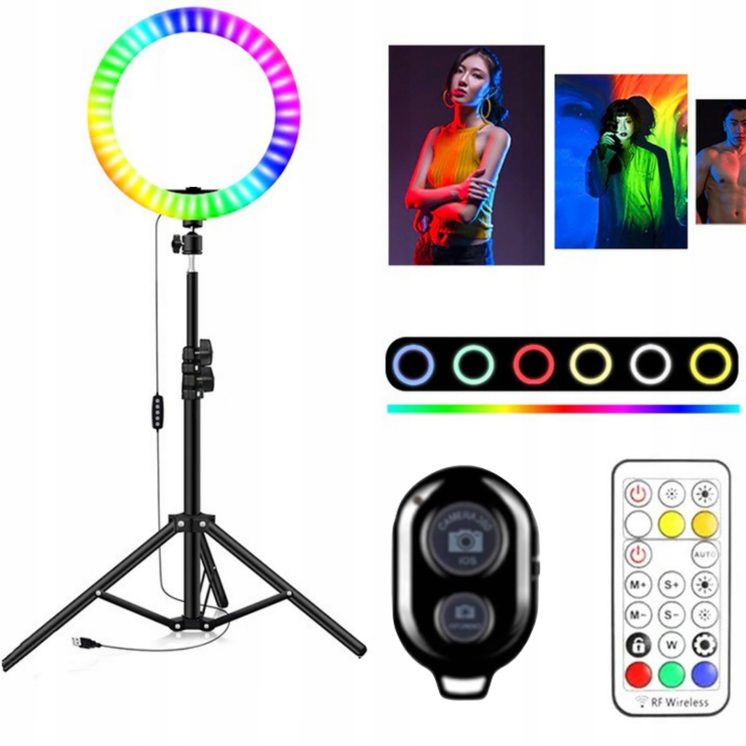 ЦВЕТНАЯ СВЕТОДИОДНАЯ КОЛЬЦЕВАЯ ЛАМПА + ШТАТИВ 220 СМ