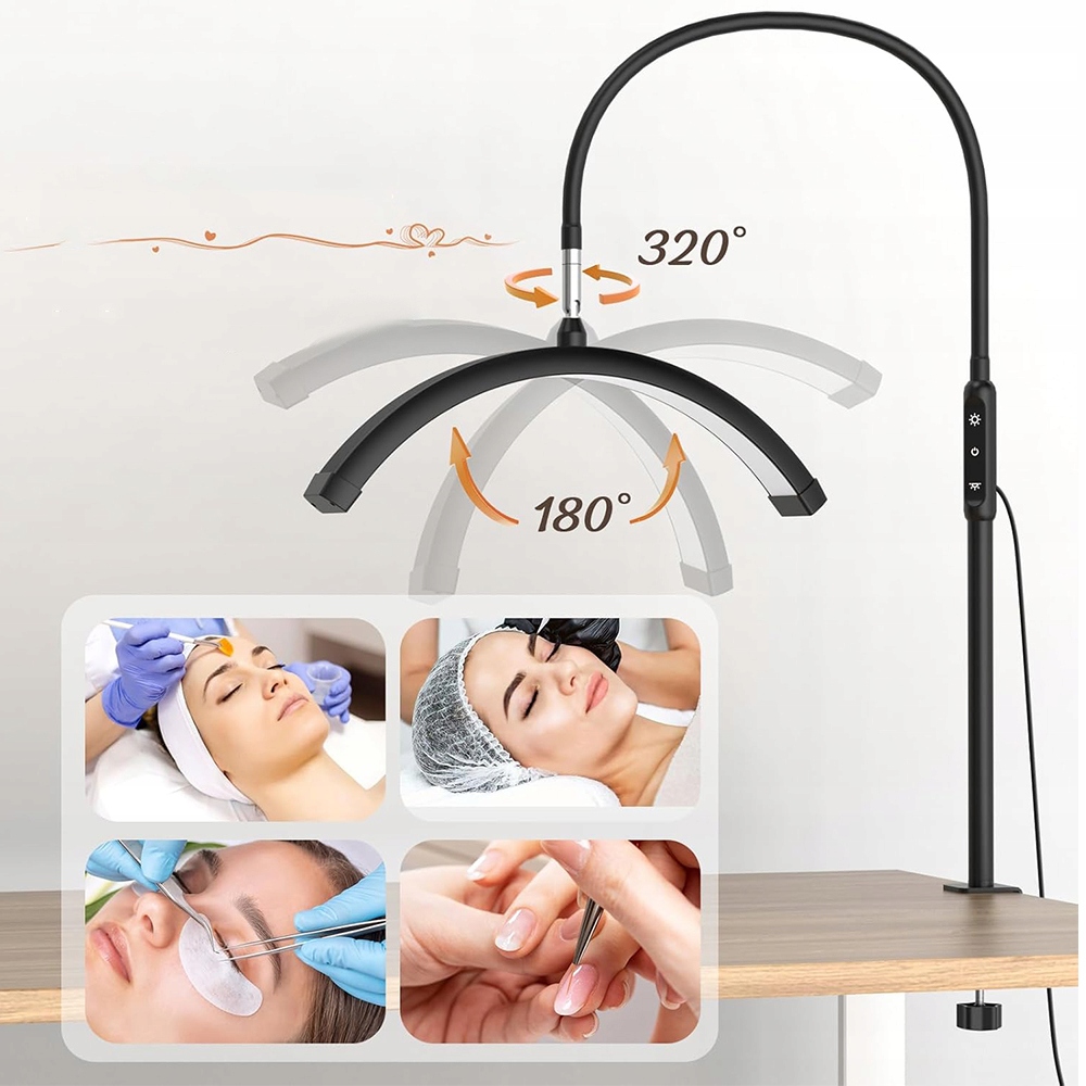 Рукав лампы для ресниц можно поворачивать на любой угол, а головка лампы может вращаться на 320 градусов влево и вправо и на 180 градусов вверх и вниз. При необходимости вы можете легко регулировать угол наклона лампы во время работы.
