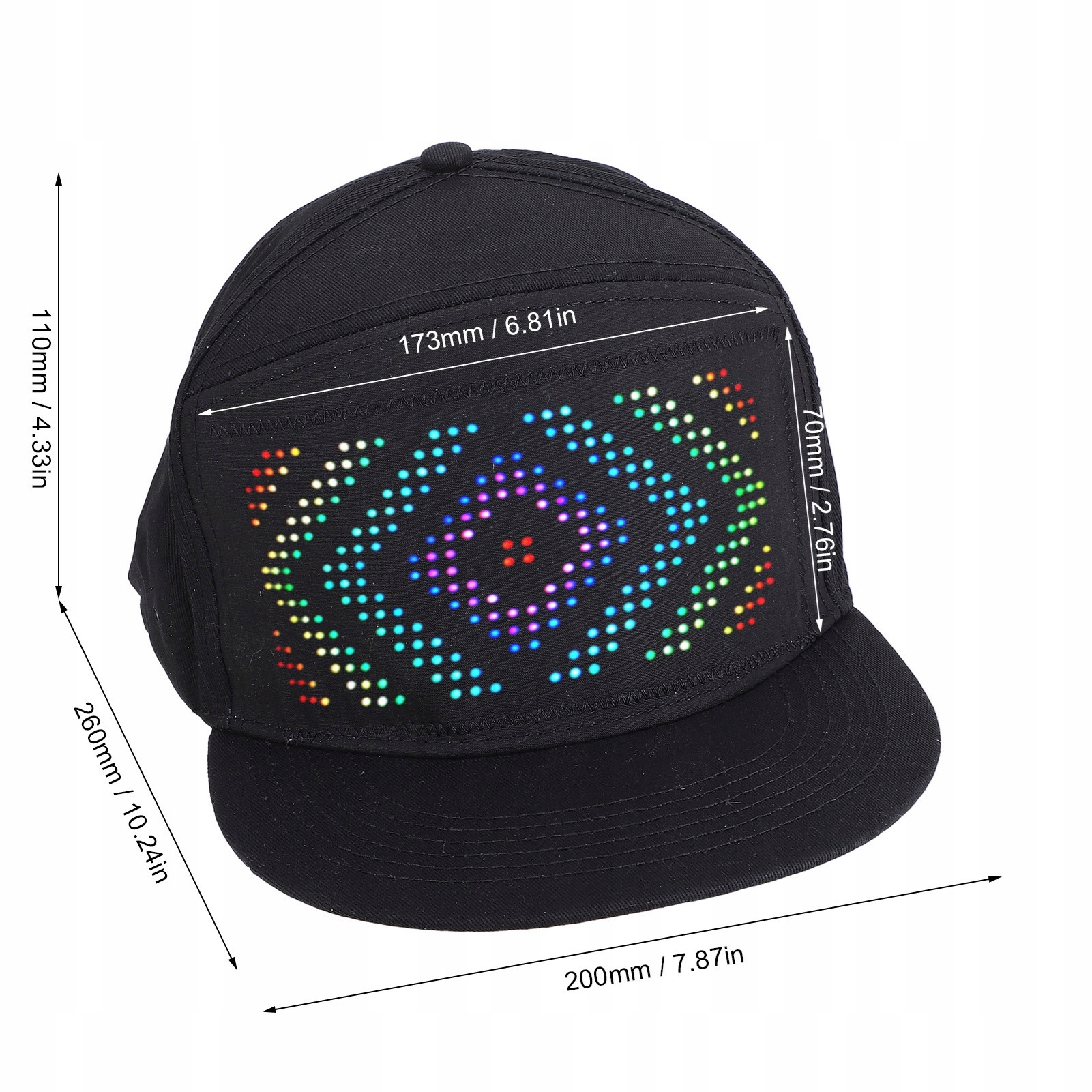 1. Материал хлопка: изделий из хлопка, эта светодиодная крышка имеет внутренний светодиодный экран дисплея. С размером 260x200x110 мм и закрывающимся защелкой вы можете легко отключить светодиод, чтобы получить традиционный вид шляпы.