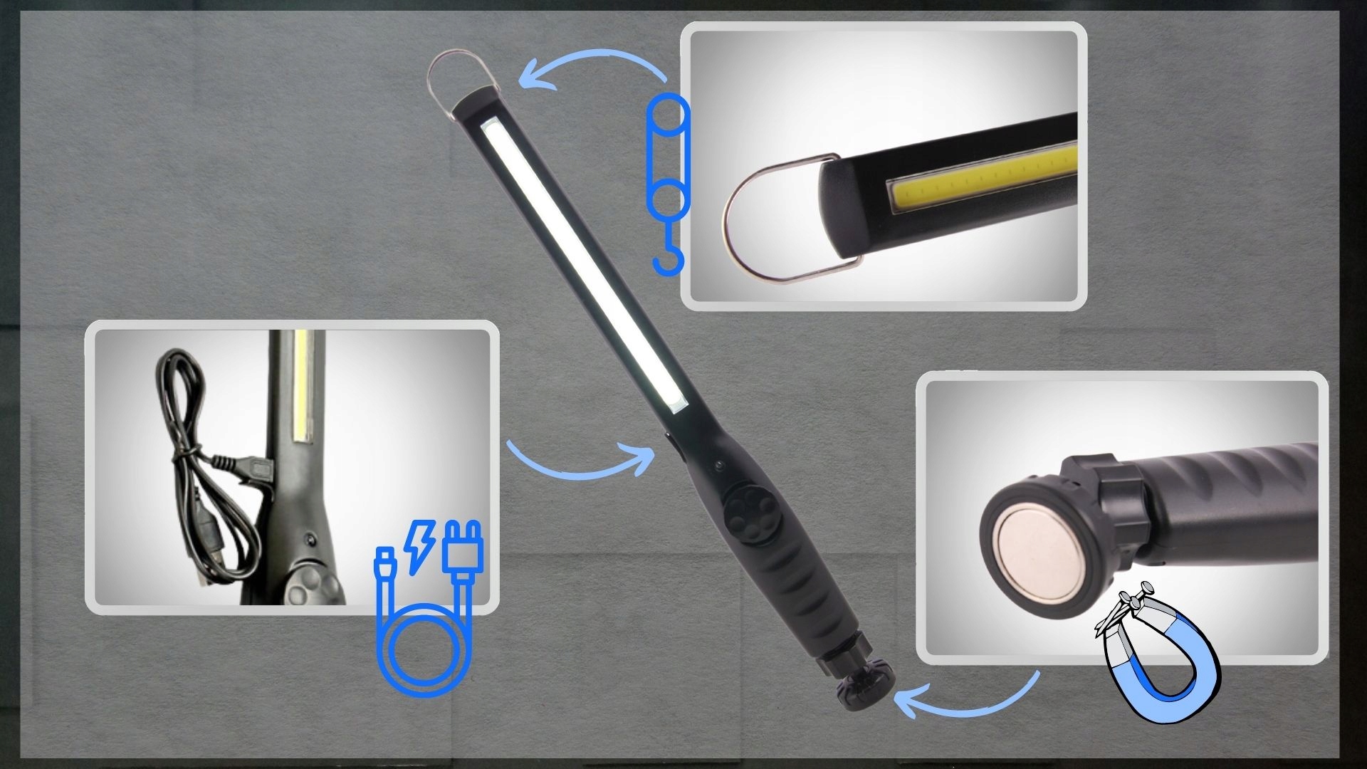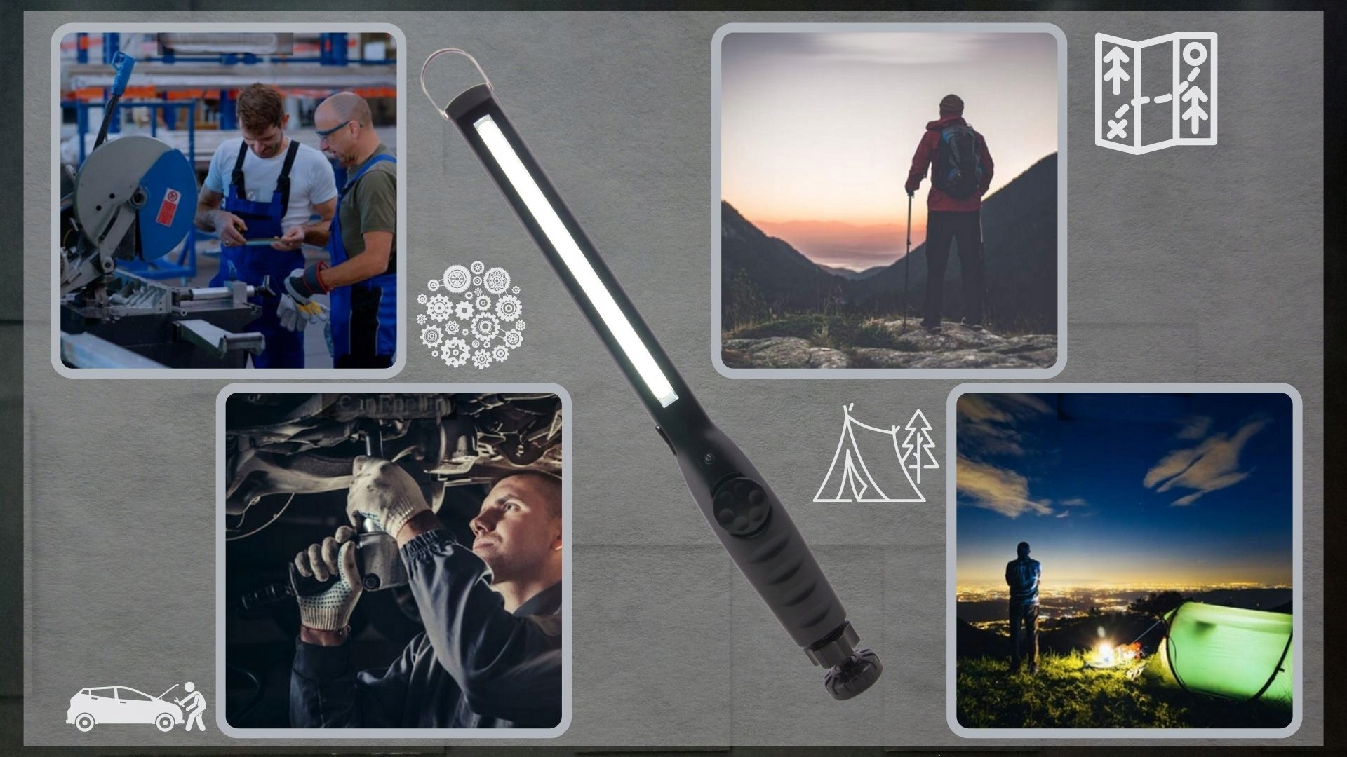 - ✅ Лампу можно использовать в автомастерской, на производстве, на даче или в походе в качестве фонарика и во многих других местах