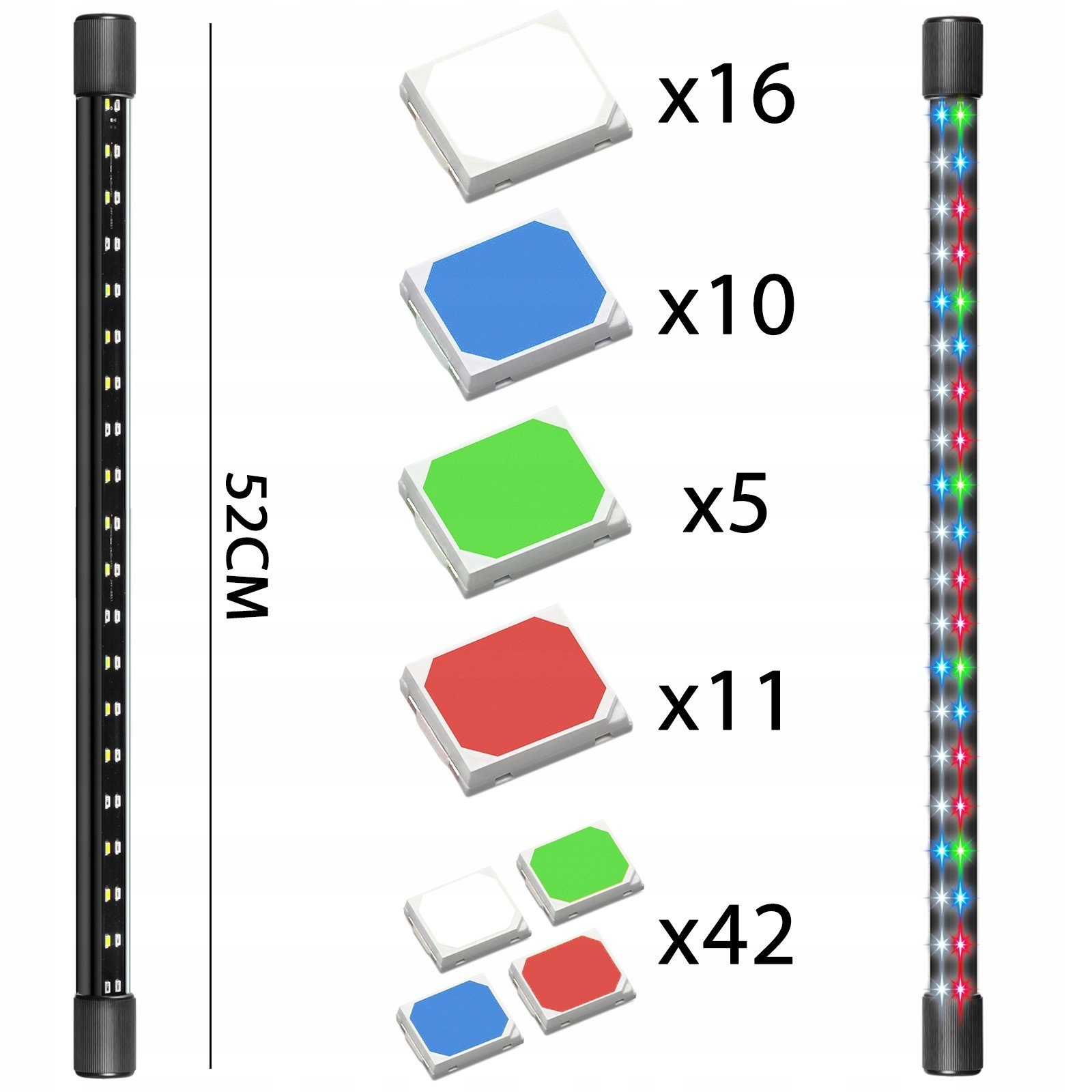 отличается? , прежде всего, комбинация полного спектра света (белый, синий, красные и зеленые диоды), которая стимулирует здоровый рост растений и энергоэффективность, которая удивляет вас - светодиод 8W заменяет традиционную флуоресцентную лампу 30 Вт.🔺 Белый свет (6500K) - подражает естественному дневному свету, поддерживает фотосинтез, обнажает естественные цвета растений и рыбы