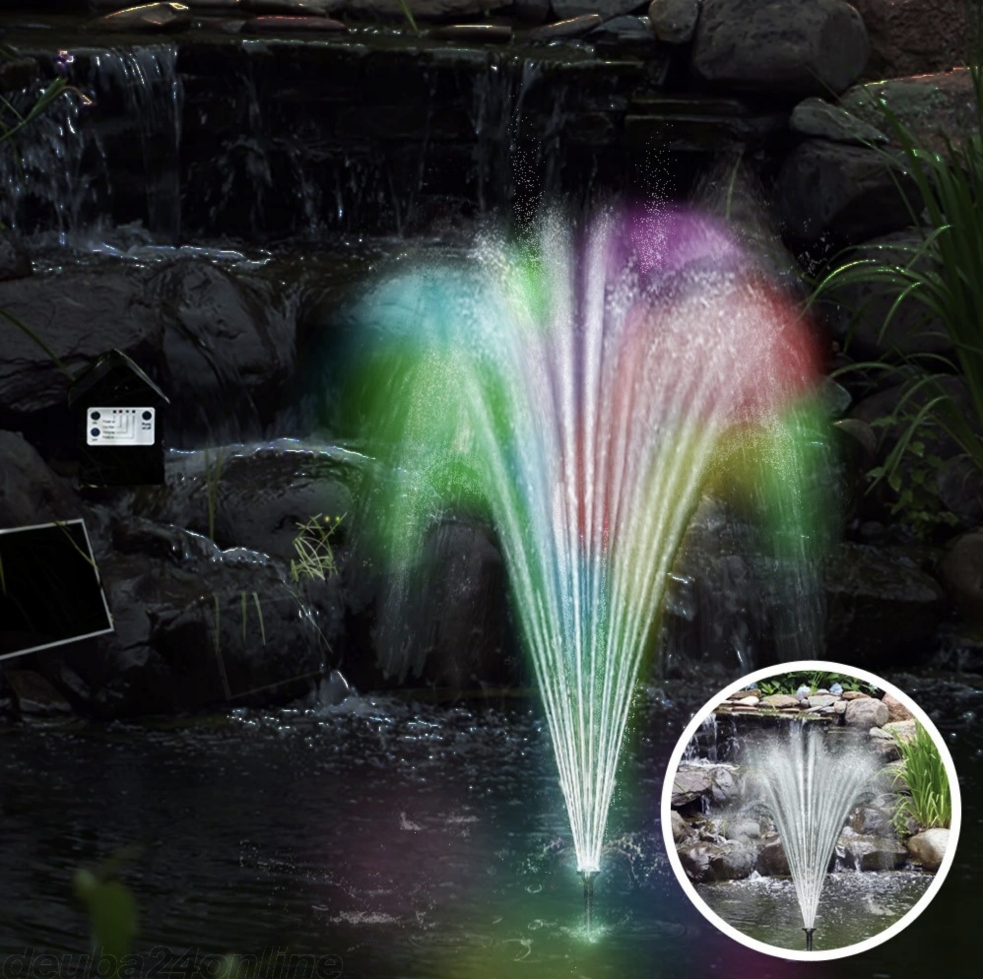 Красочный светильник со встроенным СВЕТОДИОДНЫМ ПЛАВАЮЩИМ ФОНТАНОМ для универсального использования, идеально подходит для бассейна, поскольку он водонепроницаем и плавает, а также для дома, сада или террасы. Продуман до мельчайших деталей и очень прост в использовании благодаря трем сверхярким светодиодам разных цветов и разных рабочих циклов. Вы можете выбрать одну из нескольких программ изменения света – благодаря интуитивно понятной панели управления вы легко сможете выбрать одну из них. Вы можете выбирать между чередованием случайных цветов, медленно чередованием цветов или быстро чередованием цветов. Если аттракционов недостаточно, можно включить фонтан, высота которого может достигать 1 метра.
