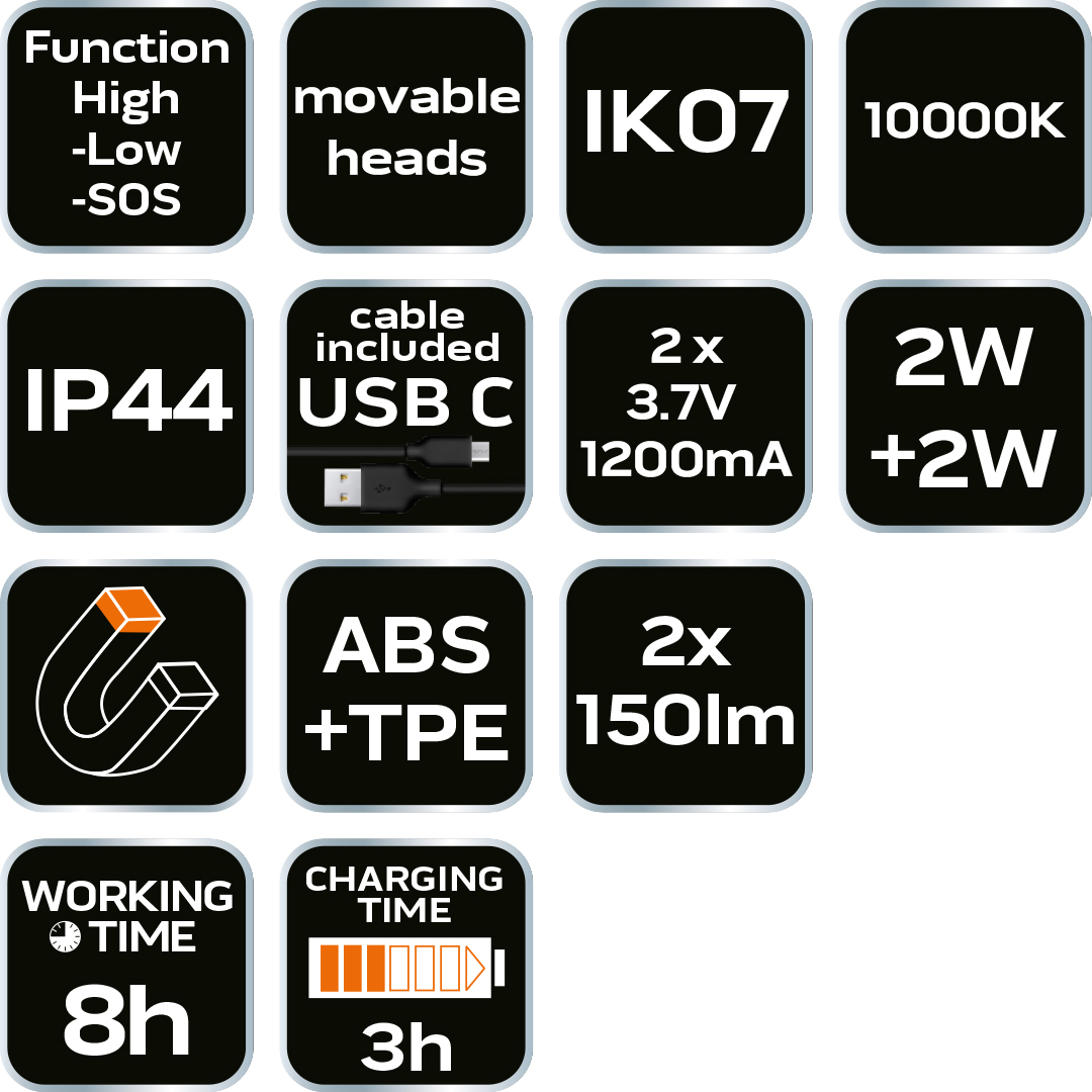 - Магнит внутри. обе лампы позволяют закрепить его на любой металлической поверхности, а резиновый ремешок облегчает использование.