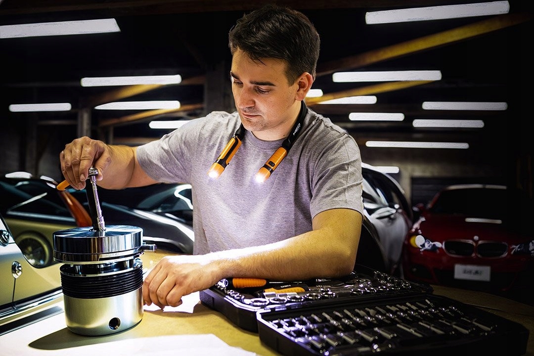 - Шейный светильник 300лм 99-112 от NEO Tools — светильник с двойным источником света мощностью 2Вт+2Вт.