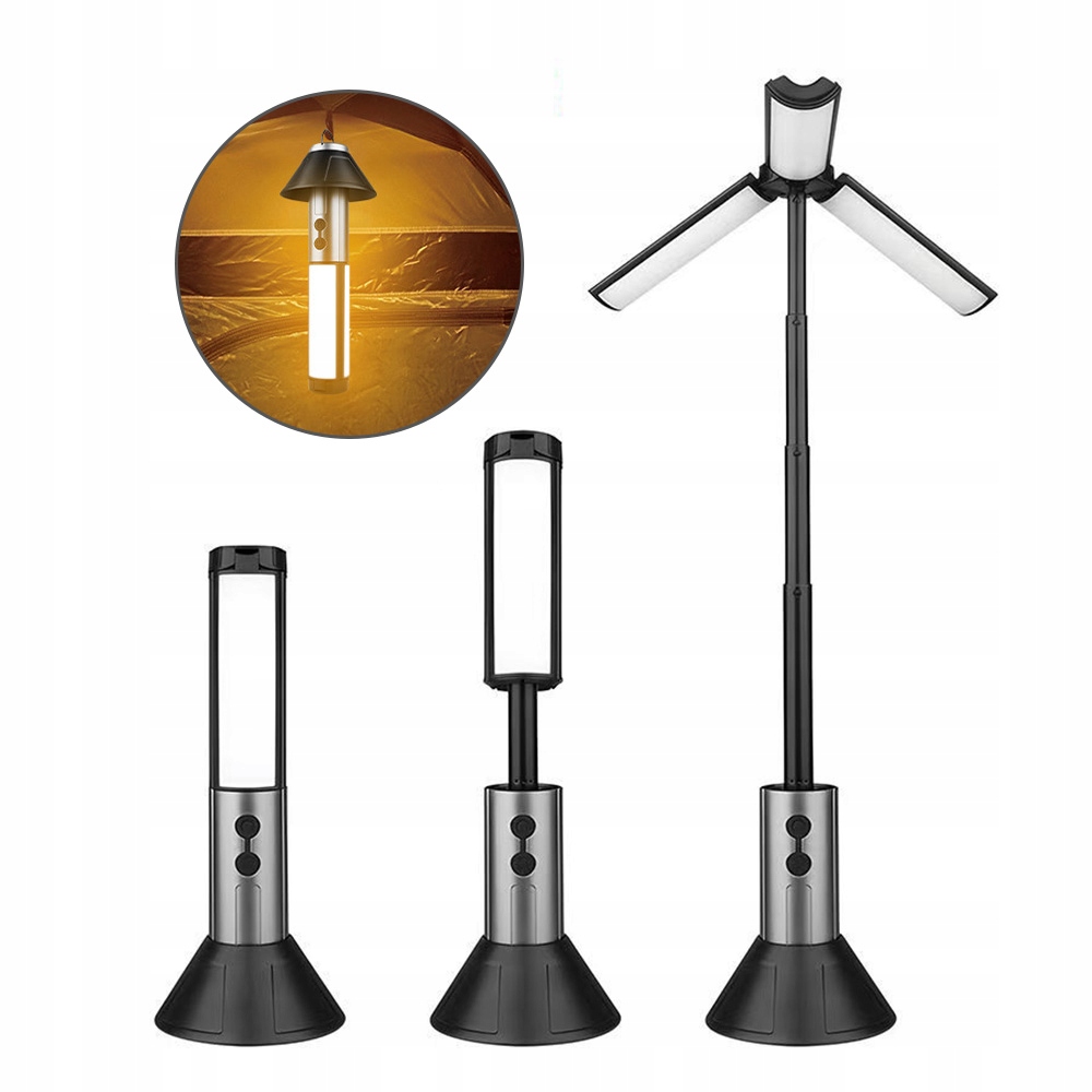 СВЕТОДИОДНЫЙ КЕМПИНГОВЫЙ ФОНАРЬ ВОДОНЕПРОНИЦАЕМЫЙ IPX4, ТЕЛЕСКОПИЧЕСКИЙ 270°, ПЕРЕЗАРЯЖАЕМЫЙ