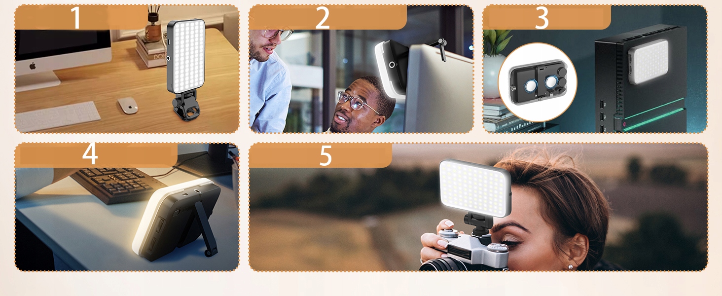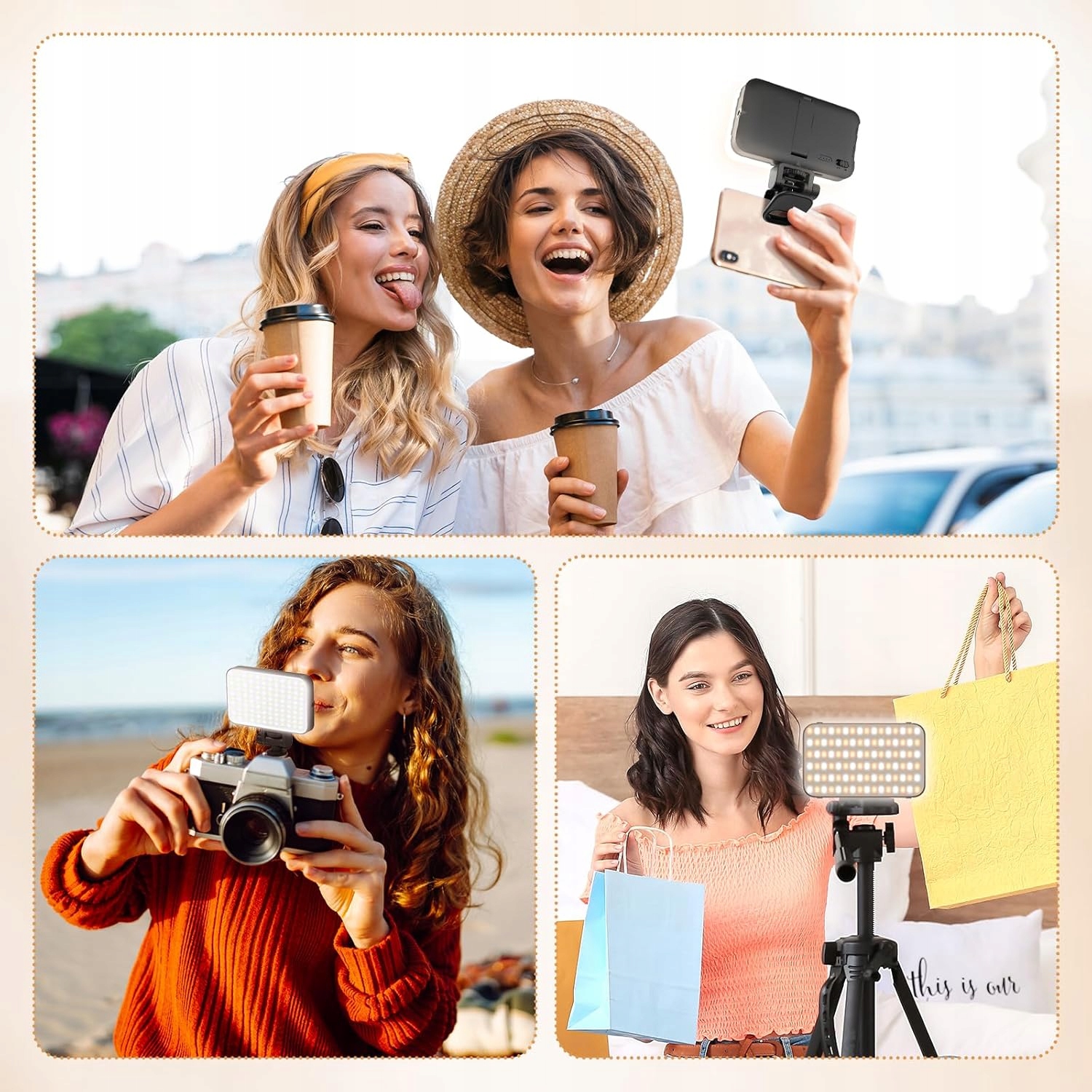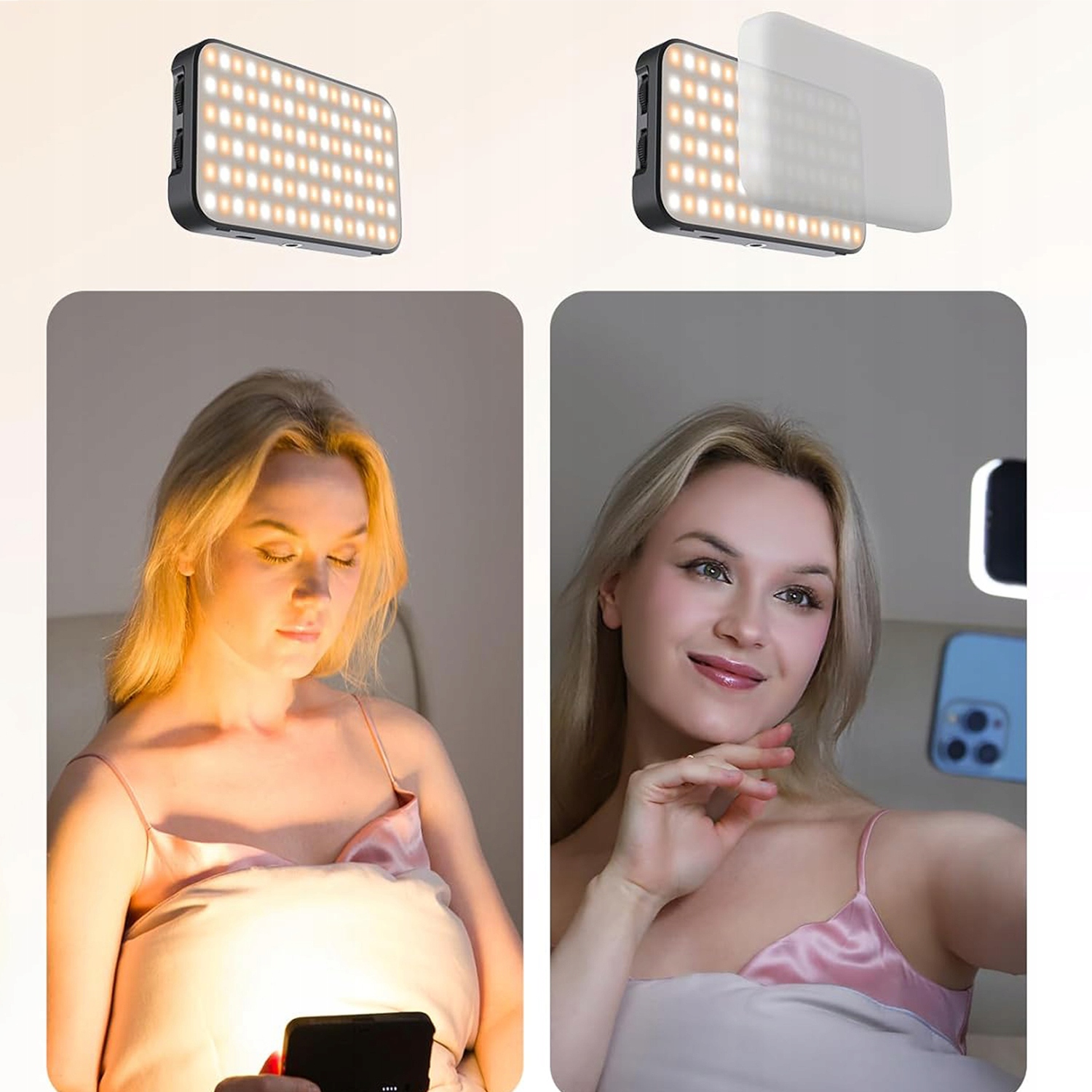 Переносная лампа оснащена изящным чехлом, который уменьшает резкий светодиодный свет, что делает ее комфортной для использования даже при ярком освещении. Он излучает мягкий очаровательный свет на ваше лицо, благодаря чему каждое селфи и видео будут выглядеть идеально и профессионально. Идеально подходит для создания контента как повседневного, так и профессионального.