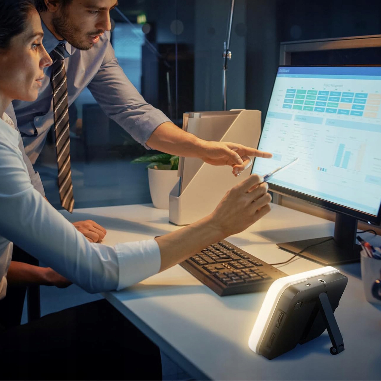 Задняя часть лампы оснащена скрытым регулируемым кронштейном, который позволяет легко разместить лампу на столе или повесить ее за компьютером. Благодаря магнитам сзади его можно прикрепить к любой металлической поверхности, освободив руки. Обеспечивает максимальную гибкость даже без держателя телефона. Идеально подходит для видеозвонков, прямых трансляций и творческих записей
