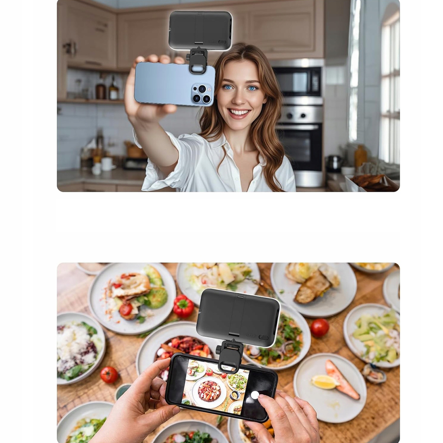 Селфи-лампа для смартфонов имеет две плавно регулируемые ручки, которые позволяют плавно регулировать цветовую температуру и яркость. Предпочитаете ли вы теплый свет в помещении или естественный свет на улице, просто установите желаемую яркость. Никаких сложных кнопок не требуется — просто поверните диск, чтобы получить идеальное освещение для каждой фотографии.