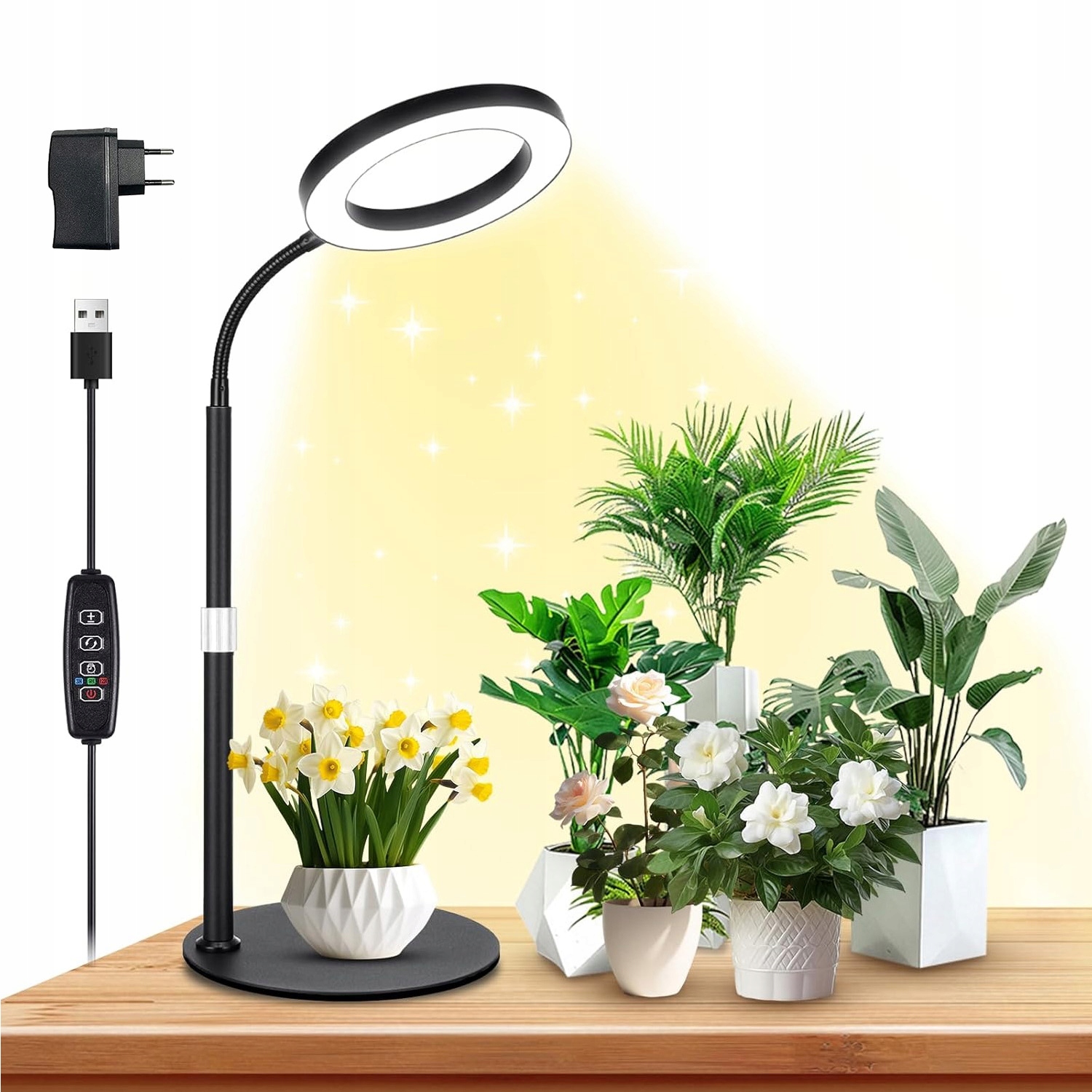 ➡ Эта лампа выращивания состоит из 72 светодиодов и обогащена полупрозрачным кольцевым абажуром, который обеспечивает лучшую световую передачу. Основа представляет собой твердое металлическое основание с диаметром φ 20 см с хлопковой подкладкой, обеспечивающей стабильность и не -скольжение. Гусейская шея и телескопический пост дают свободу регулировать угол и высоту, которую вы хотите, с настройками от 23 до 67 дюймов (от 58 до 170 см) для размещения различных крупных растений!
