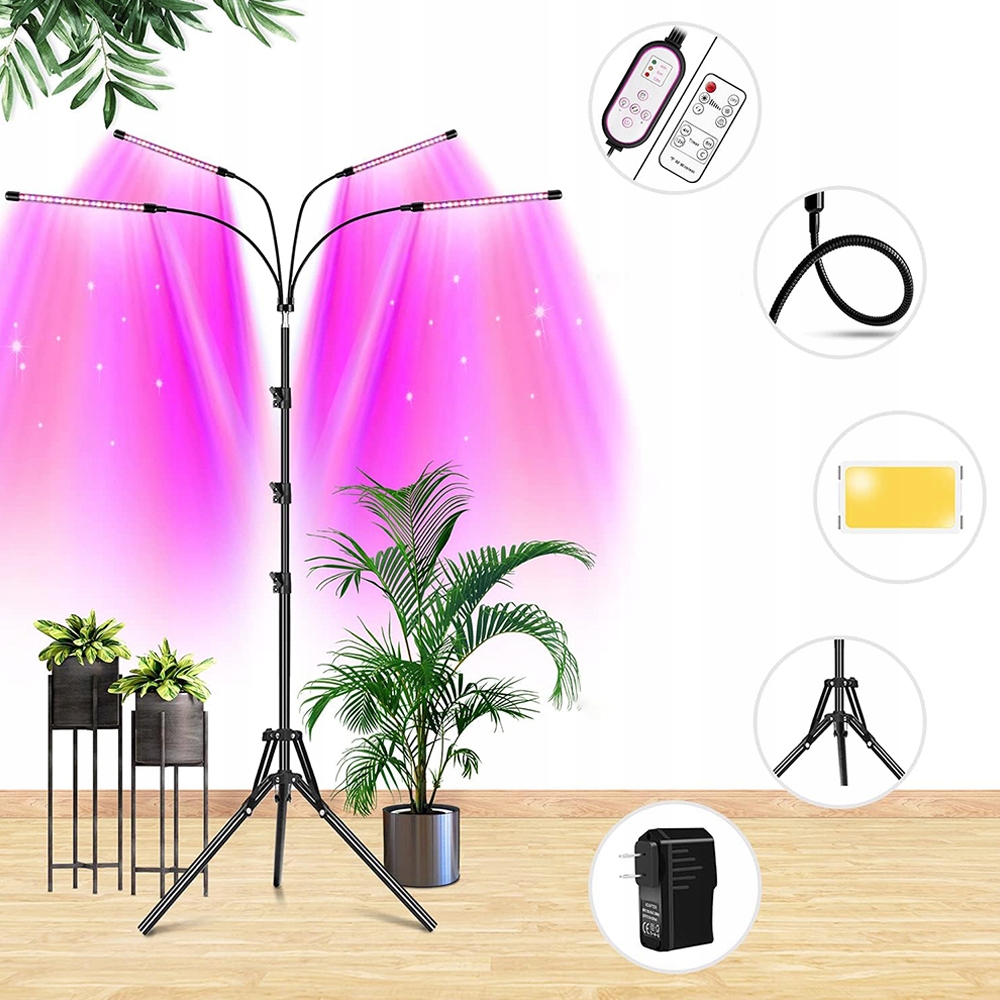 Светодиодная лампа для растений с штативом 4 головы полная регулировка спектра 360 °