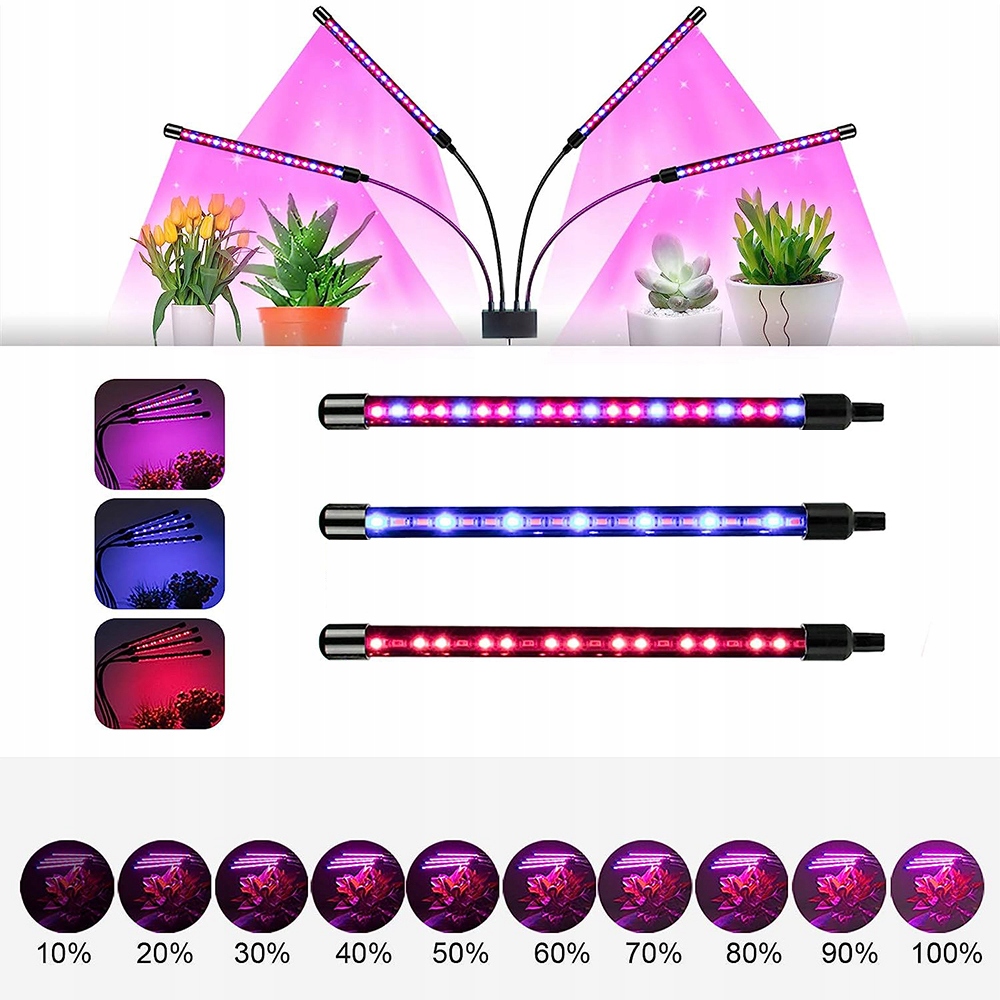 🍀 Вы можете установить другой спектр: красный, синий или смесь красного и синего. Имеется 10 режимов регулировки яркости, для которых можно установить желаемую яркость от 10%, 20%... до 100% для удовлетворения потребностей в освещении всех ваших растений на разных стадиях