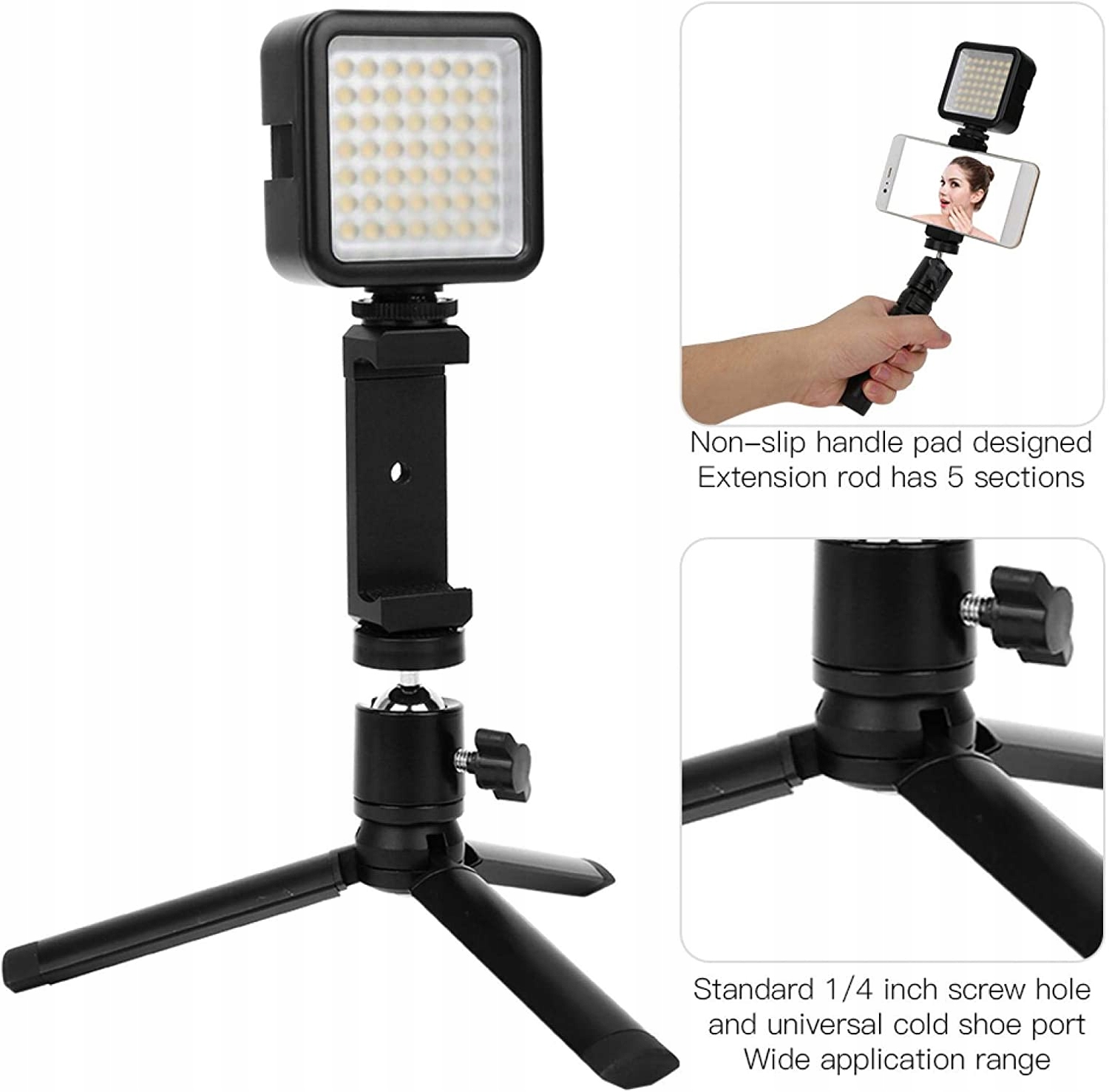 Бесступенчатая регулировка высоты. Конструкция противоскользящей накладки на ручку DRX 05ek DłuajX 05cy имеет 5 секций, телескопический вылет 15 см 56 см. Вы можете найти подходящую высоту x 05. Эффективное противоскользящее действие. Штатив обладает антивозрастными свойствами — противоскользящие подушечки для ног из натурального каучука позволяют безопасно фотографировать в сложных условиях. Удлинитель ВЫКЛ. 05Разъем Drx 05Удлинительный кабель 05поверните по часовой стрелке, чтобы освободить фиксатор выравнивания выпуклой стороны, поверните влево, чтобы заблокировать выравнивание выпуклой линии. Широкий диапазон совместимости. Зажим для мобильного телефона длиной 60 мм и 90 мм подходит для мобильных телефонов различных размеров. Широкое применение Стандартные 14 винтовых отверстий и универсальный порт для холодного башмака Широкий диапазон применения подходит для всех видов стабилизаторов мобильных телефонов, камер движения, удобной записи видео, просмотра селфи, телевизионной антенны 05 и т. д.