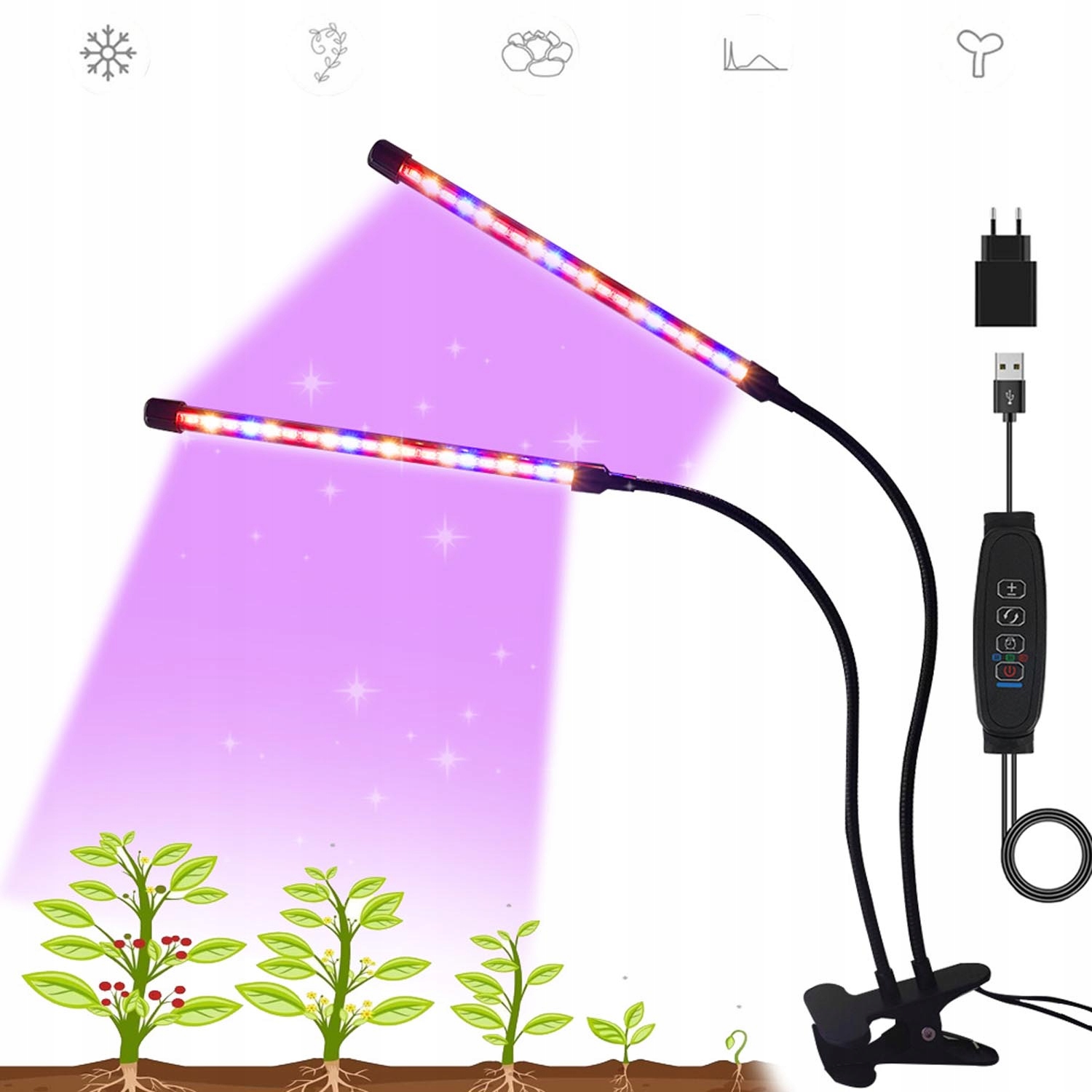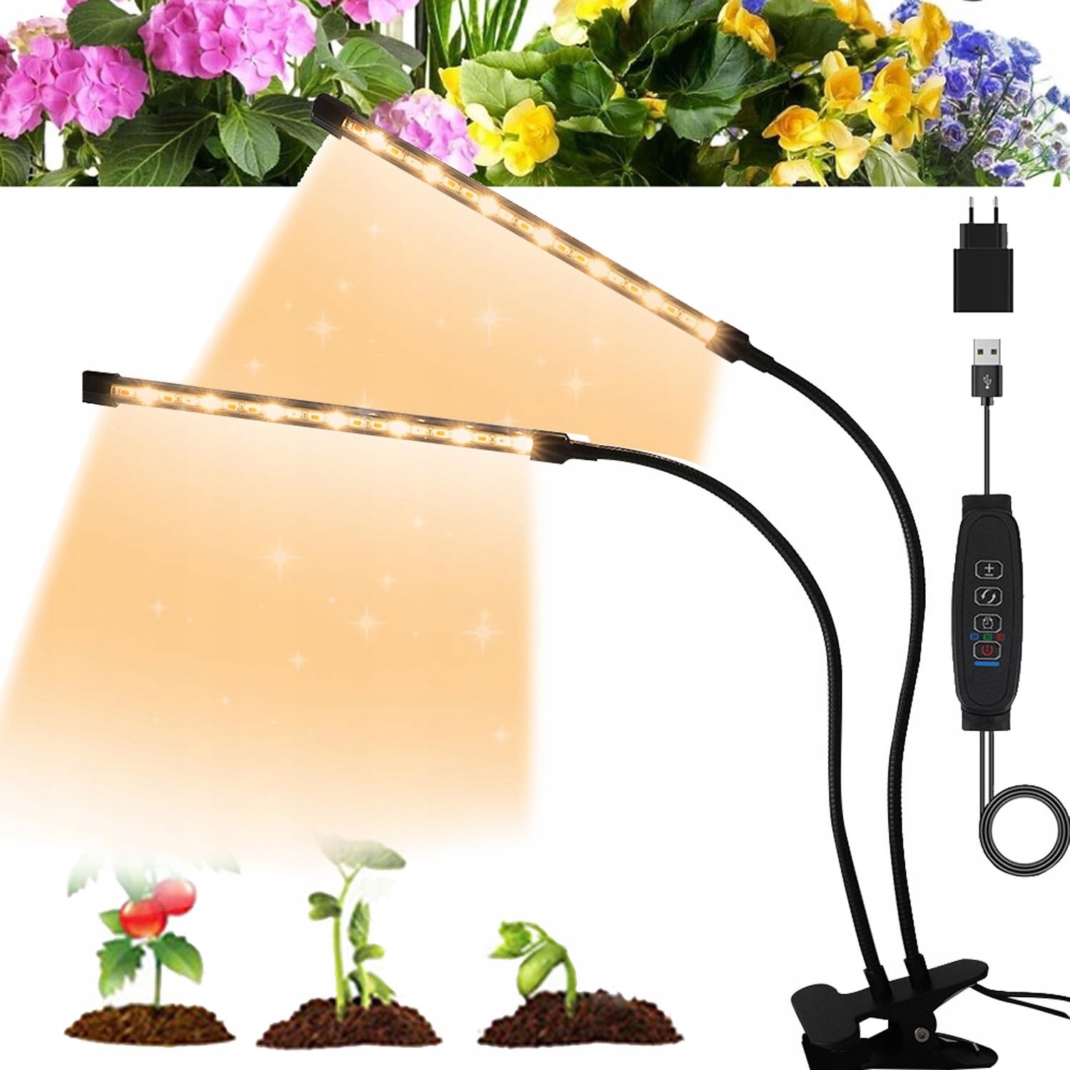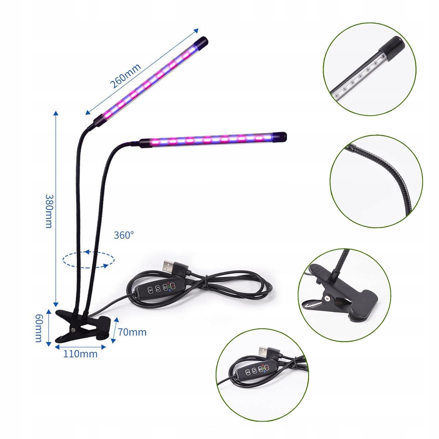 🌷【Простота в использовании】Основа лампы для выращивания растений состоит из зажимов который можно разместить прямо на столе или прикрепить к краю стола для лучшей фиксации. Оснащен USB-кабелем, более удобным. 10 режимов регулировки яркости света, конструкция «лебединая шея» позволяет свободно регулировать угол.