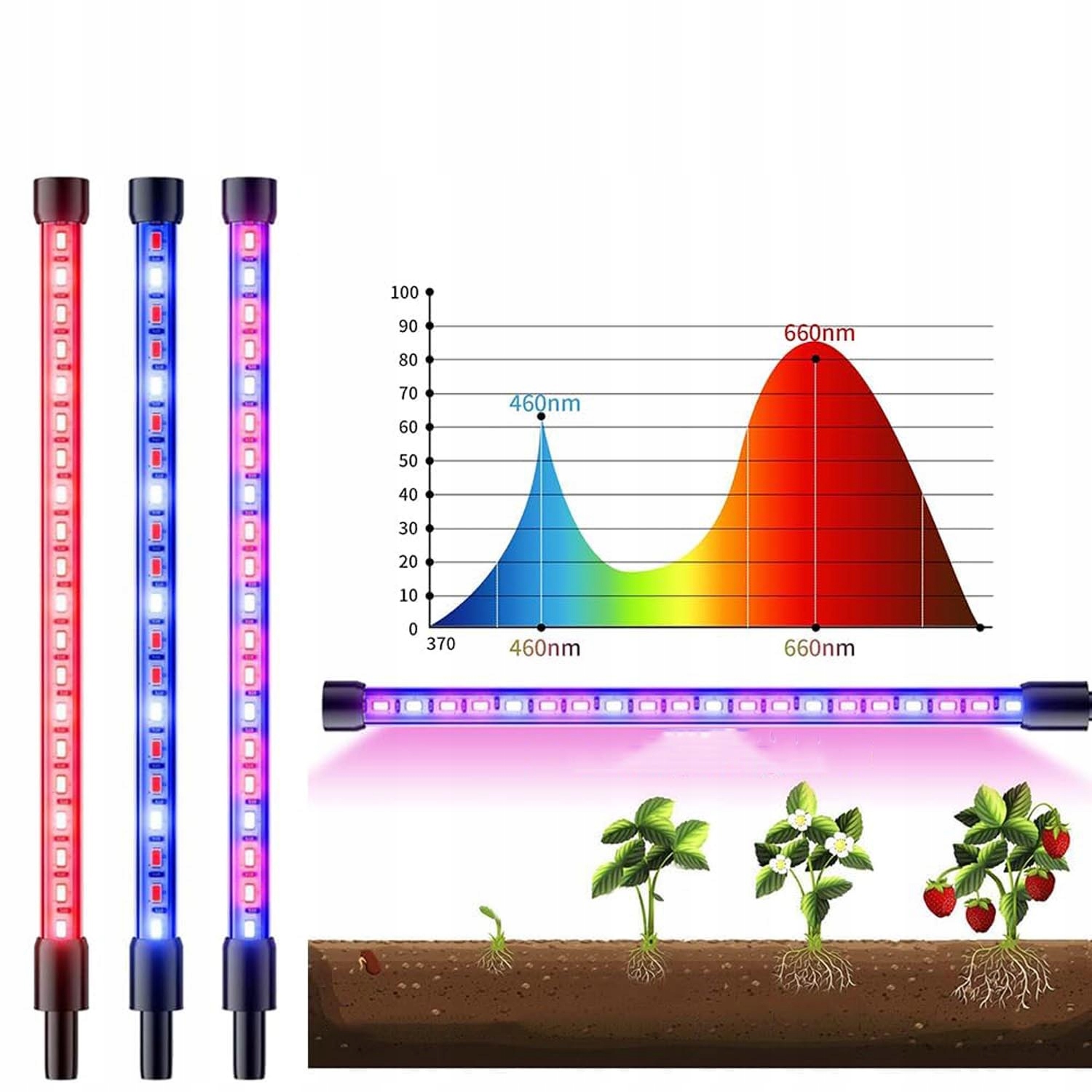 🍓【3 режима освещения】 Светильник для комнатных растений имеет три режима освещения: красный/синий/красный + синий, длина волны синего света 455-460 нм, может контролировать рост растений, предотвращать слишком длинные и не толстые ветви. Красный свет с длиной волны 625-630 нм поддерживает рост, цветение и плодоношение растений.