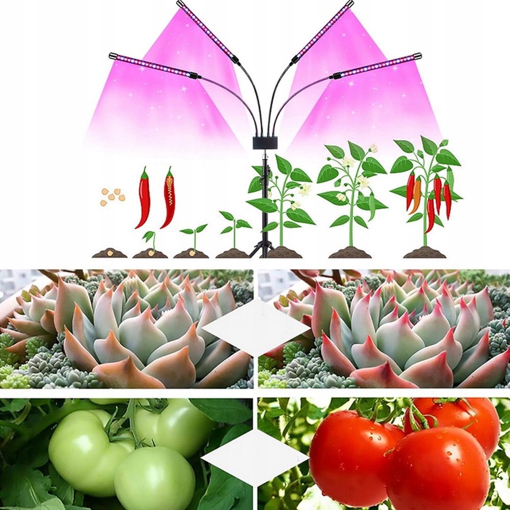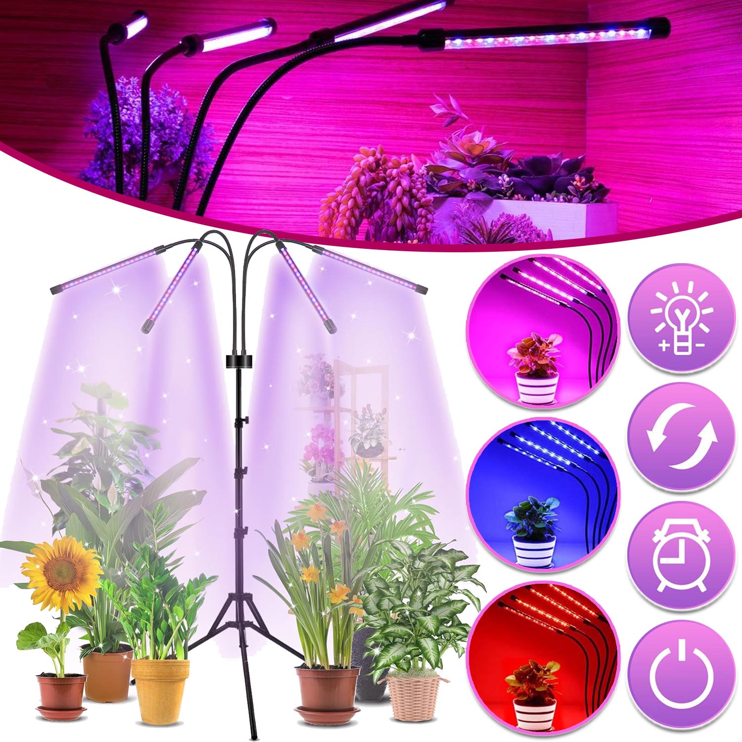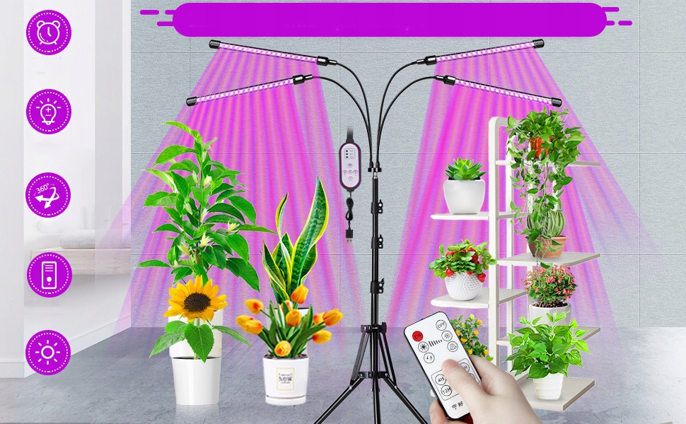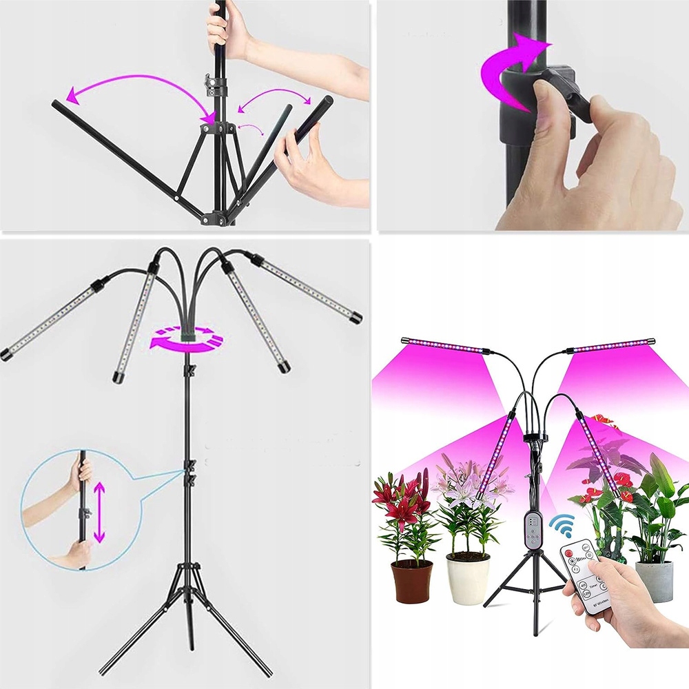 4 светильника для растений на гибкой стойке обеспечивают более широкую зону покрытия и более эффективный свет, чем традиционные светильники для растений. Вы можете включить одну, две, три или четыре световые ленты, 4 режима освещения помогают экономить электроэнергию. Светодиодная лампа имеет 10 различных уровней яркости, регулируемых от 10% до 100%.