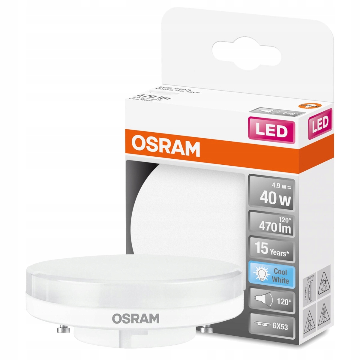 Светодиодная лампа-фара признанного бренда OSRAM с цоколем GX53 мощностью 4,9 Вт (эквивалент 40 Вт) представляет собой современная и энергосберегающая замена старым классическим рефлекторам, обеспечивающая нейтральный свет с цветовой температурой 4000К. Используя новейшую светодиодную технологию, отражатель отличается реальной цветопередачей и максимальной эффективностью.