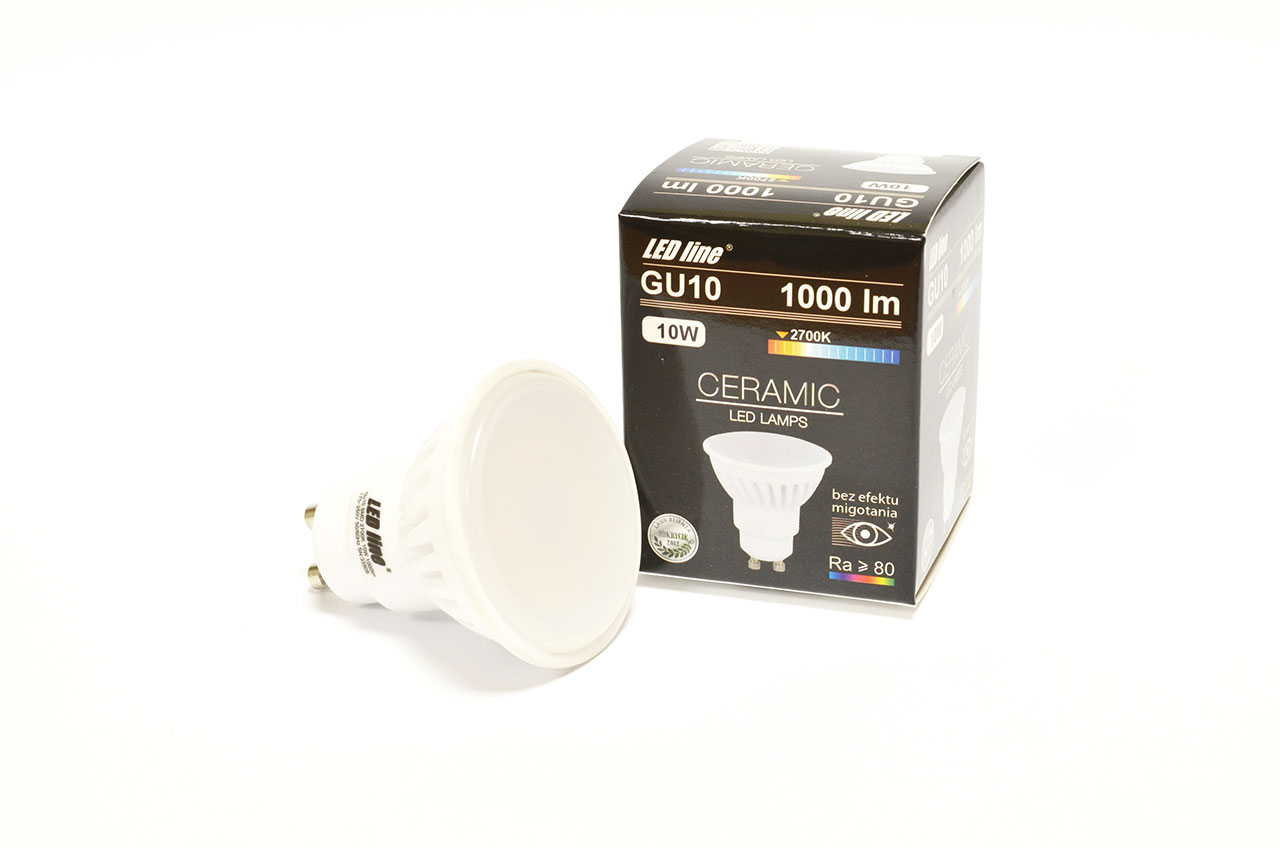 <ул>Расширив предложение бренда LED line® новой лампой GU10 10Вт 1000лм – самой мощной моделью GU10, мы обеспечили лучшее качество световых параметров и комфорт использования. Потребляя всего 10Вт, они излучают стабильный световой поток 1000лм, сохраняя при этом высокую степень цветопередачи Ra>80. Использование керамического корпуса светодиодной лампы не только увеличивает срок службы лампы, но и придает ей уникальный внешний вид. Керамика – один из лучших материалов, используемых при изготовлении светодиодных ламп. Он гарантирует отличную теплопроводность, обеспечивая эффективный отвод выделяемого тепла наружу, а также является хорошим электроизолятором, что гарантирует исключительную безопасность в использовании. Специально разработанный абажур прекрасно рассеивает свет, устраняя эффект бликов. Новейшая система электропитания исключает мерцание светодиодного света, улучшая самочувствие пользователя, а также снижает стробоскопический эффект, представляющий угрозу на рабочих местах. Использование новой лампы GU10 от LED line® с цветовой температурой 2700К поможет создать теплую атмосферу в вашем доме. Его лучше всего использовать во внутреннем освещении, например, в осветительных приборах, декоративных конструкциях или подвесных потолках.
