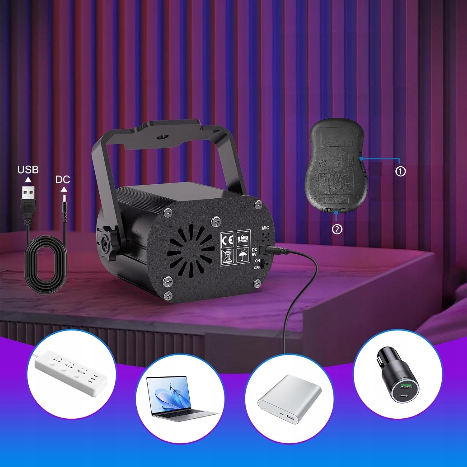 Большим преимуществом party Light является способность удаленно контролировать с помощью беспроводного инфракрасного дистанционного управления . Благодаря этому мы можем легко управлять много -фектом , даже если он расположен в трудных местах. ✅ пульт дистанционного управления позволяет включать и выключать единицу , переключение между автоматическими и звуковыми режимами , управление лазером и цветовыми миксами , создание стробоскопов и программирование party Lights , чтобы устройство выключалось после установленного времени (функция функции (функция).