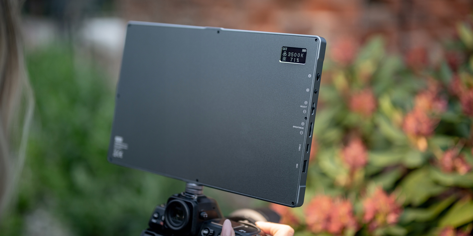 Newell RGB-W Rangha Max XL — компактная светодиодная панель впечатляющих размеров 28 на 18 см, которая оправдает ожидания как фотографов, так и создателей видео. Устройство предлагает регулировку цветовой температуры (2500–9900 К), а также возможность изменения цвета света в цветовом пространстве HSI. Интуитивное управление фонарем обеспечивается эргономичными ручками и кнопками, а также OLED-экраном с подсветкой. Три резьбы 1/4" и входящий в комплект переходник для холодного башмака — решения, позволяющие подключить лампу к штативу или фото-видео аксессуарам. Порт USB-C позволяет быстро пополнить запас энергии встроенного аккумулятора (2500 В). мАч). Разъем USB-A позволяет заряжать другие устройства непосредственно от фонаря. Также производителем предусмотрен 21 спецэффект (в том числе стробоскоп, свеча или свет полицейской машины).