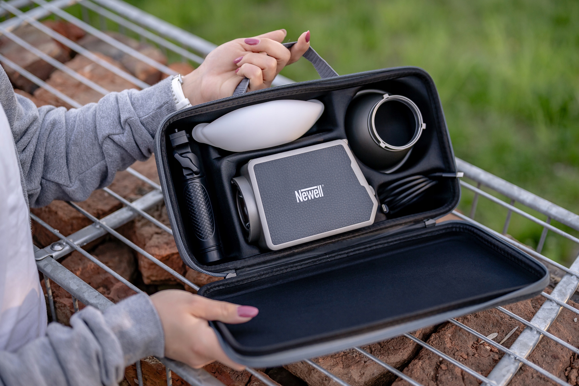 Newell Zora 90 WB — компактная светодиодная лампа мощностью 100 Вт, созданная для творческих людей, которые ценят мобильность и высокое качество света. Он предлагает регулируемую цветовую температуру в диапазоне от 2700 до 6500 К, высокий индекс цветопередачи (≥97), 12 специальных эффектов и максимальную яркость до 20 100 лк. интенсивность света. Встроенный аккумулятор емкостью 4500 мАч обеспечивает независимость от розетки, а мобильное приложение позволяет управлять устройством удаленно (до 60 м). Лампа имеет крепление Mini Bowens, а после покупки адаптера поддерживает и полноразмерные аксессуары стандарта Bowens. Благодаря высокой яркости света и плавной настройке параметров он идеально подходит фотографам, кинематографистам и создателям контента — как на природе, так и в студии.