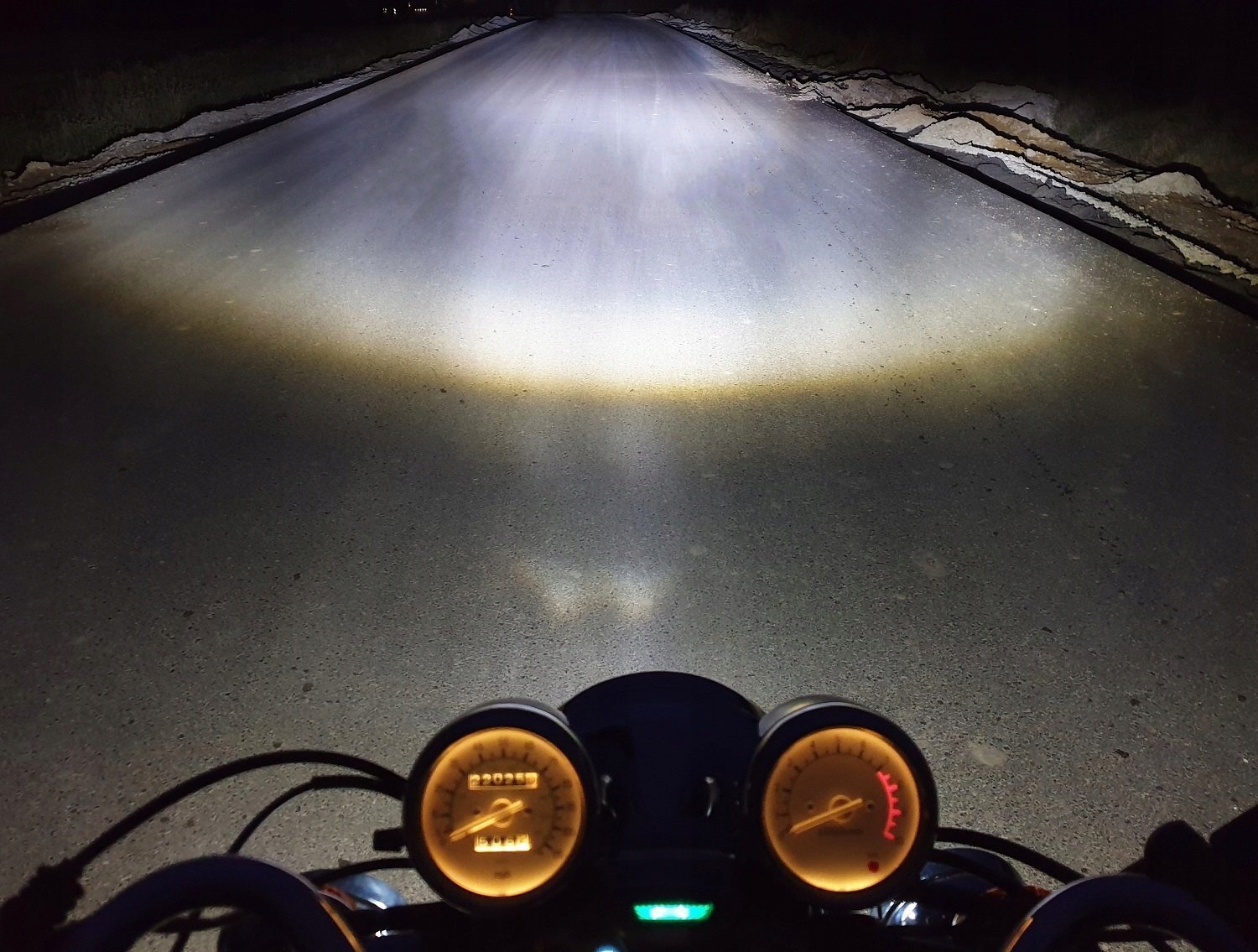 - значение (количество) излучаемого света (для одной лампы):длинный свет: около 5760 Лм; короткий свет: около 2880 Лм, это значение в Лм, генерируемое каждой лампой, тогда как значение фактического освещения дороги соответственно для длинного света: около 3400 Лм и для короткого света около 1700 Лм (из-за физических факторов) упомянутое в пункте выше); для сравнения: стандартное значение излучаемого света в оригинальных мотоциклетных лампах в среднем составляет: 1200 Лм для длинных ламп и 700 Лм для коротких ламп (т.е. для стандартных ламп значение фактической освещенности дороги составляет около 708 Лм для длинных ламп и 413 Лм для коротких ламп); чем больше «Лм», тем больше света.