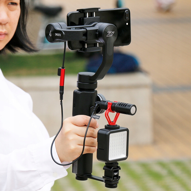 Универсальный адаптер, оснащенный тремя холодными ножками и двумя стандартными креплениями 1/4 дюйма, позволяет одновременно подключать внешние аксессуары, такие как светодиодные лампы, внешний микрофон, монитор предварительного просмотра.