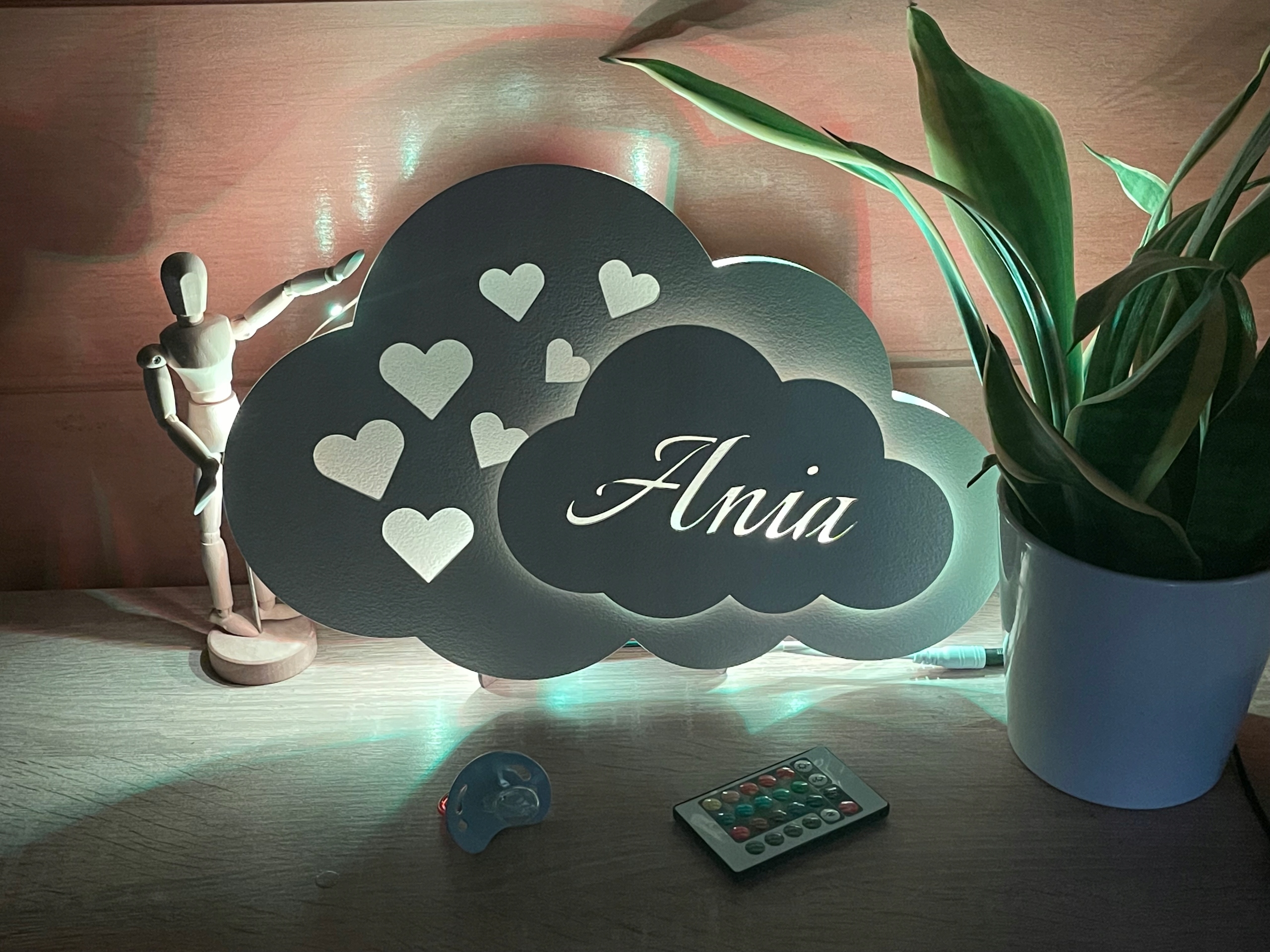 Наша светодиодная лампа с облаком - идеальное решение для детской комнаты. Благодаря этому вы создадите уютное и теплое настроение, которое облегчит вашему ребенку заснуть, будучи красивым внутренним украшением. Лампа персонализирован - мы нанесем на нее имя вашего ребенка, что даст ей уникальный характер.