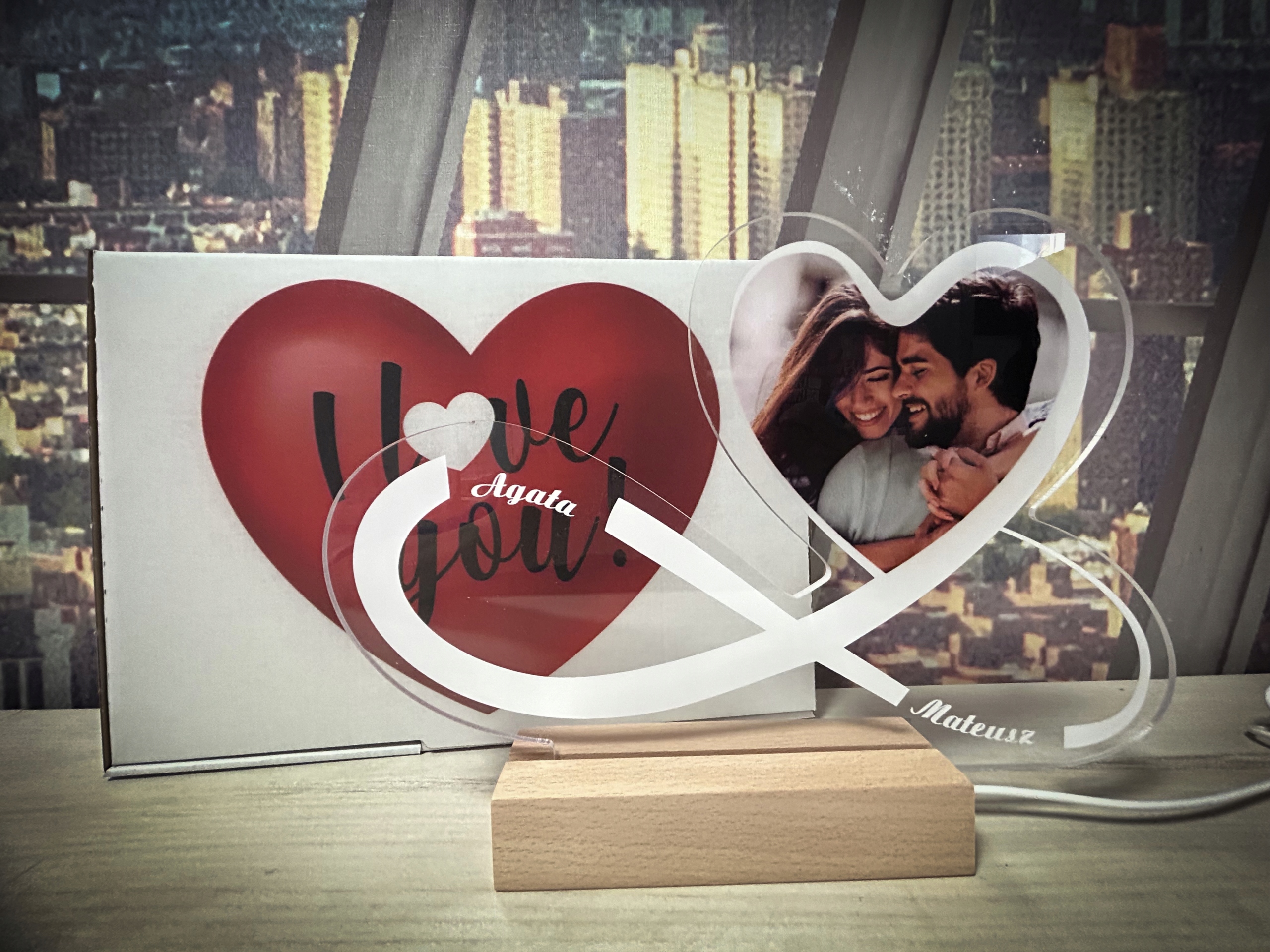 Дайте свою собственную фотографию или поделитесь из прекрасных моментов, проведенных вместе, взяты в виде освещенного сердца и бесконечности.