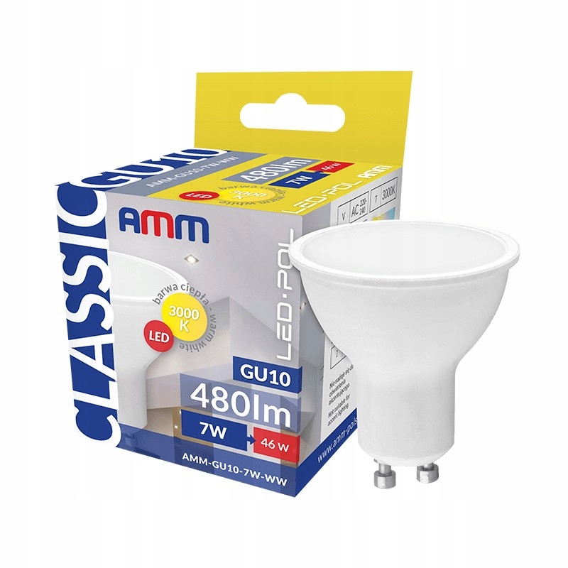 СВЕТОДИОДНАЯ ЛАМПА GU10 7ВТ ТЕПЛЫЙ ЦВЕТ 3000К