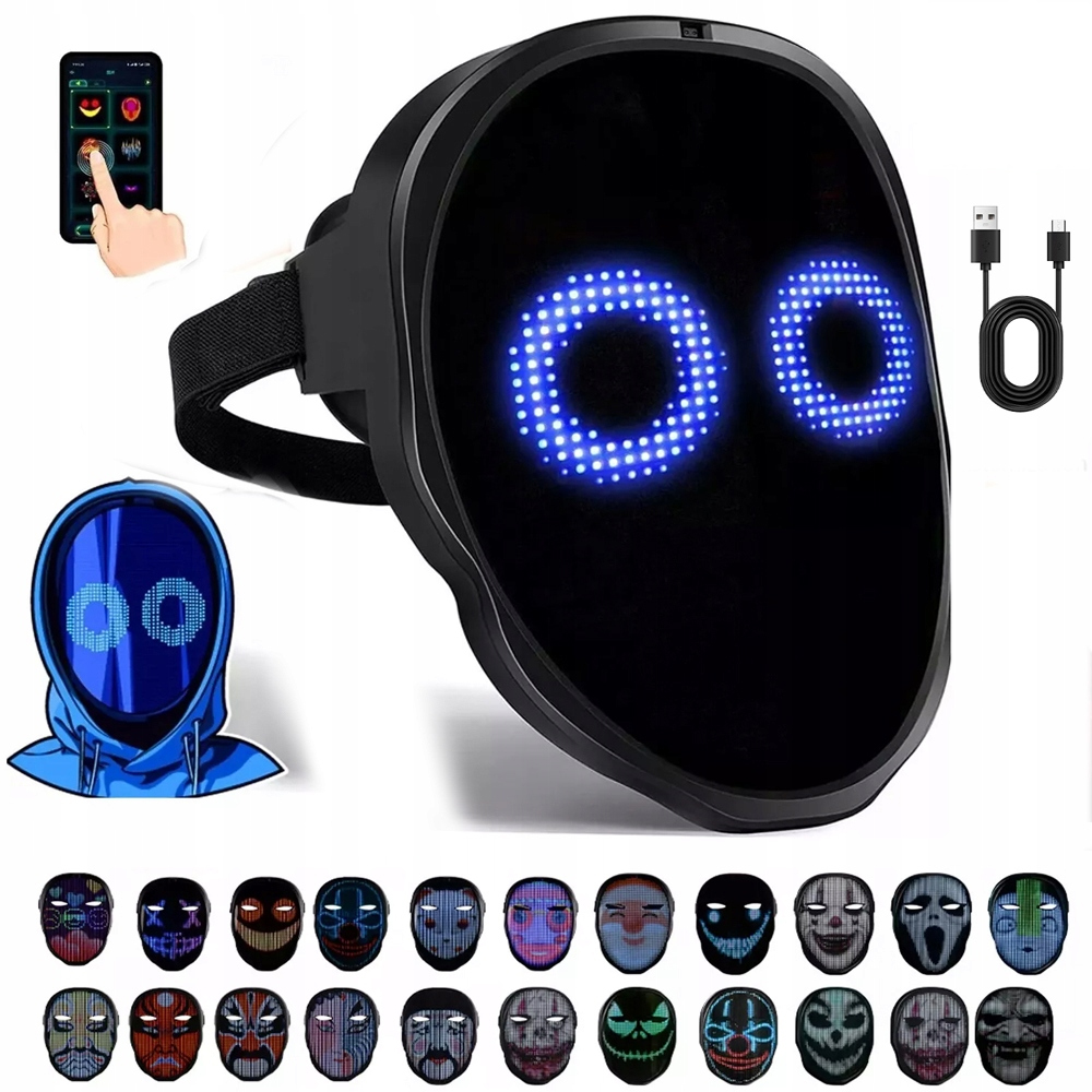 СВЕТОДИОДНАЯ МАСКА HALOWEEN УПРАВЛЯЕМАЯ ЖЕСТАМИ УМНАЯ ПОДСВЕТКА ЭКРАН 234x LED
