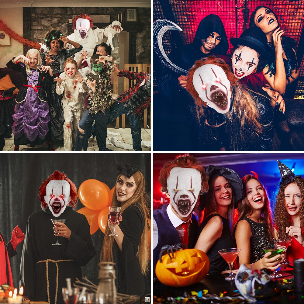 СВІТЛОДІОДНА МАСКА КЛОУНА КОСПЛЕЙ PENNYWISE КЛОУН НА ХЕЛЛОВІН МАСКАРАД КОСТЮМ