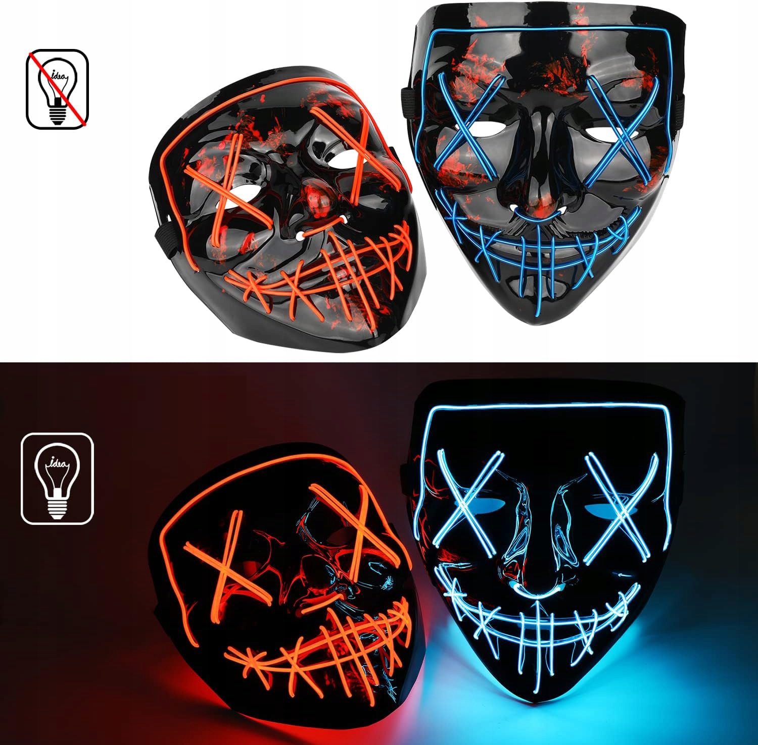 ✅ СВЕТЯЩАЯСЯ СВЕТОДИОДНАЯ МАСКА ОЧИСТКА ХЭЛЛОУИН ВЕЧЕРИНКА