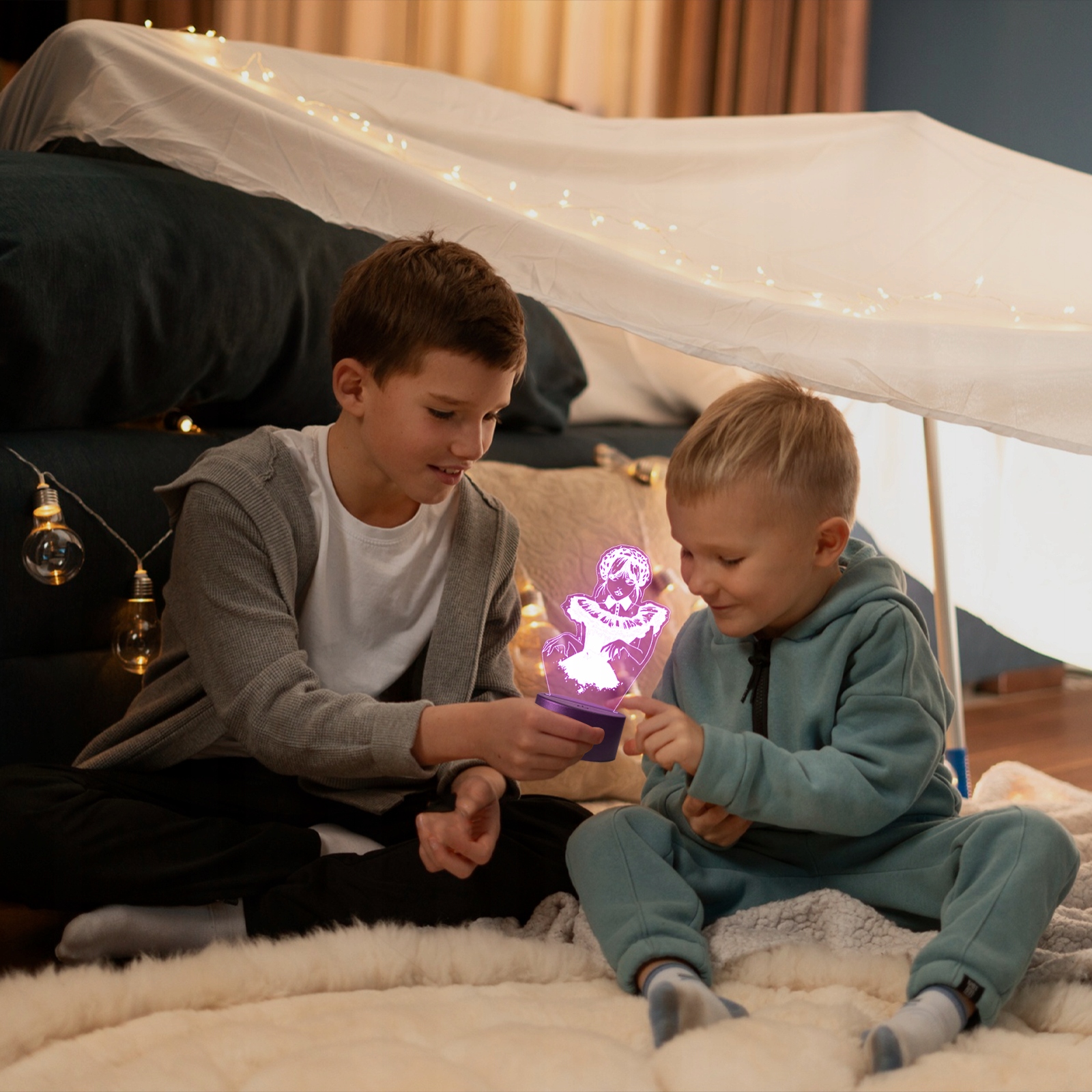3DLAMP — отличный выбор не только для детей, но и для взрослых. Он прекрасно вписывается в различные интерьеры, добавляя им шарма и элегантности. Это идеальный подарок на день рождения, праздник, дополнение к украшению комнаты или праздничный подарок. Его теплый свет эффективно освещает темные ночи.
