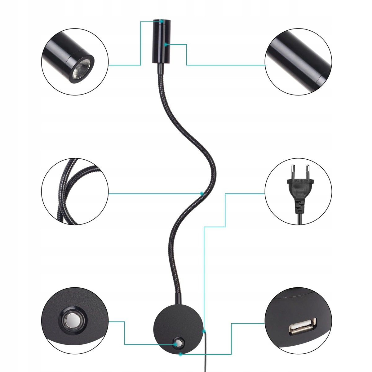 Гибкая на 360° шея, которую можно легко поворачивать в любом направлении и обеспечивает яркий свет там, где это необходимо.