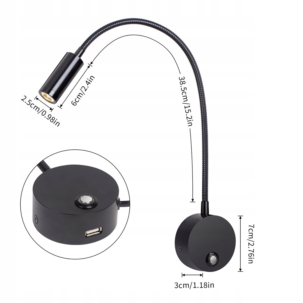 СВЕТОДИОДНАЯ НАСТЕННАЯ ЛАМПА 3ВТ 3000K-6000K НАСТЕННАЯ ЛАМПА ДЛЯ ЧТЕНИЯ +USB-ПЕРЕКЛЮЧАТЕЛЬ